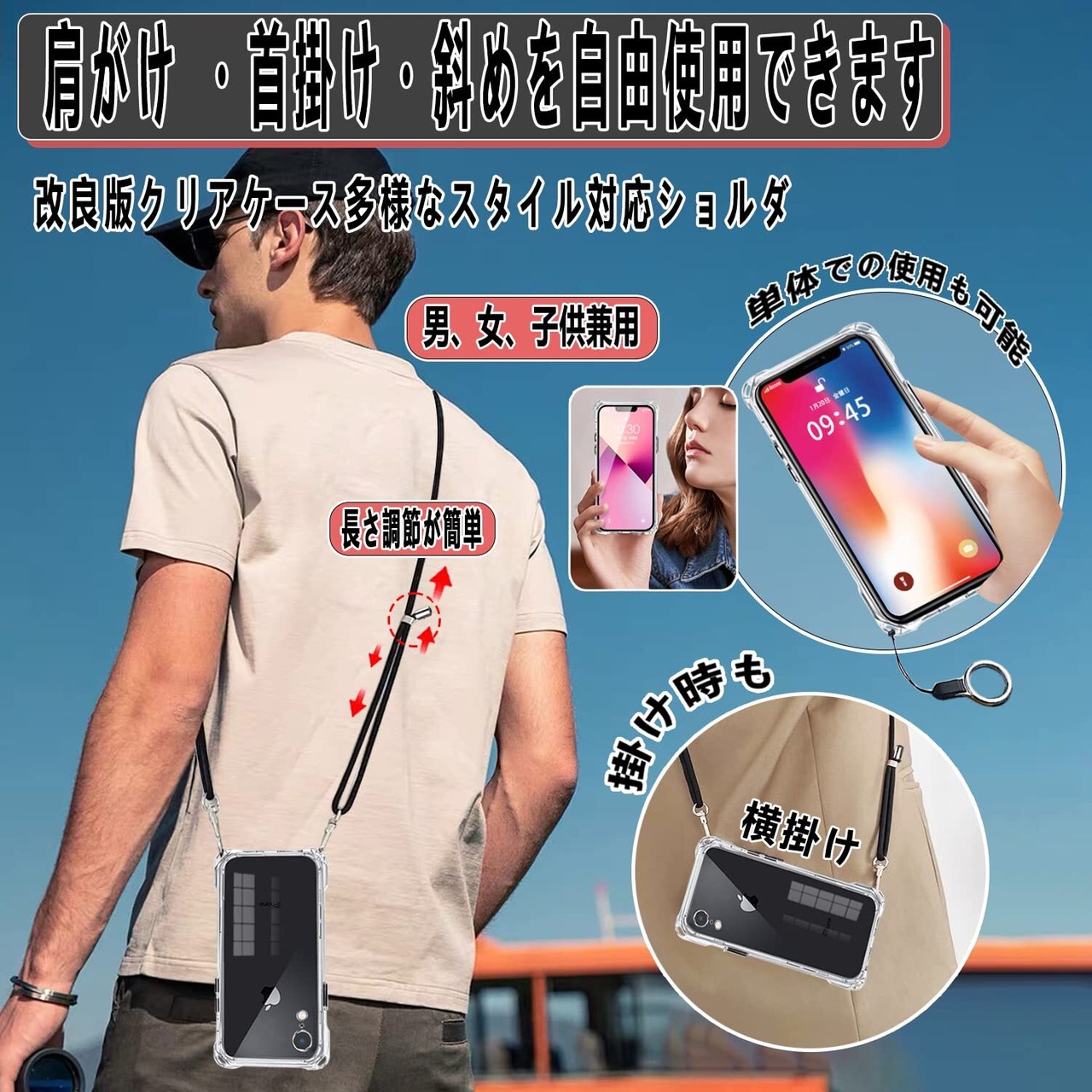 OJBSEN iPhone XR ケース アイフォン XR カバー iphonexrスマホケース [ストラップ2枚付き] 調節可能な ショルダー 肩がけ 首掛け 紐付き 斜めがけ 薄型 透明 シリコン TPU 軽量 バンパー ストラップホール付き [耐衝撃 全面保護 米軍MIL規格 防指紋] MagSafe ワイヤレス充電対応 iPhone10r ケース (クリア)