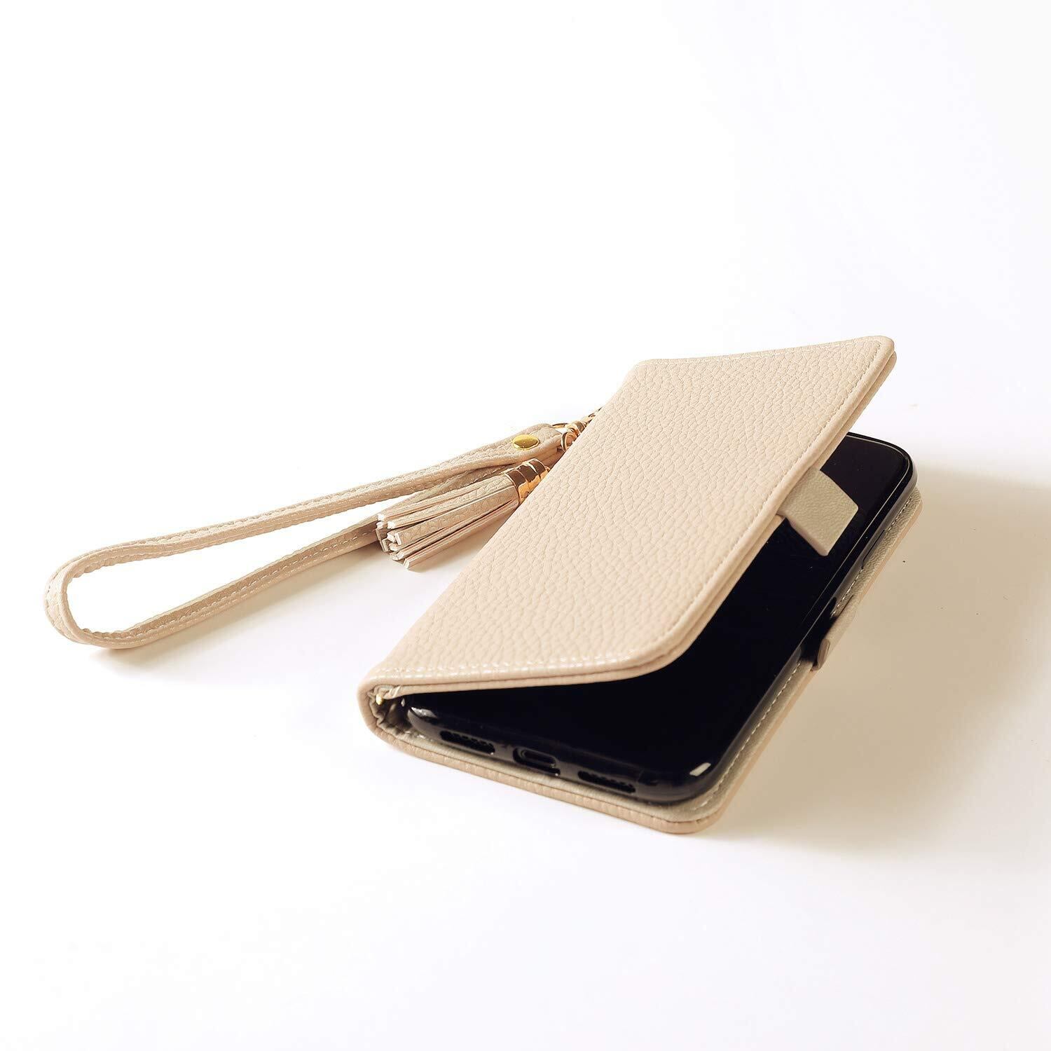 iPhoneXR ケース 手帳型 iphone XR 手帳型 ケース かわいい スマホケース 手帳型 おしゃれ 可愛い アイフォン XR 携帯ケース カード収納 保護ケース 薄型 耐衝撃 防水 軽量 高級PUレザー 横置き機能 スマホ iphone XR カバー マグネット式 ストラップ付き お洒落 全面保護カバー 財布型 diy鏡付き[ベージュ]