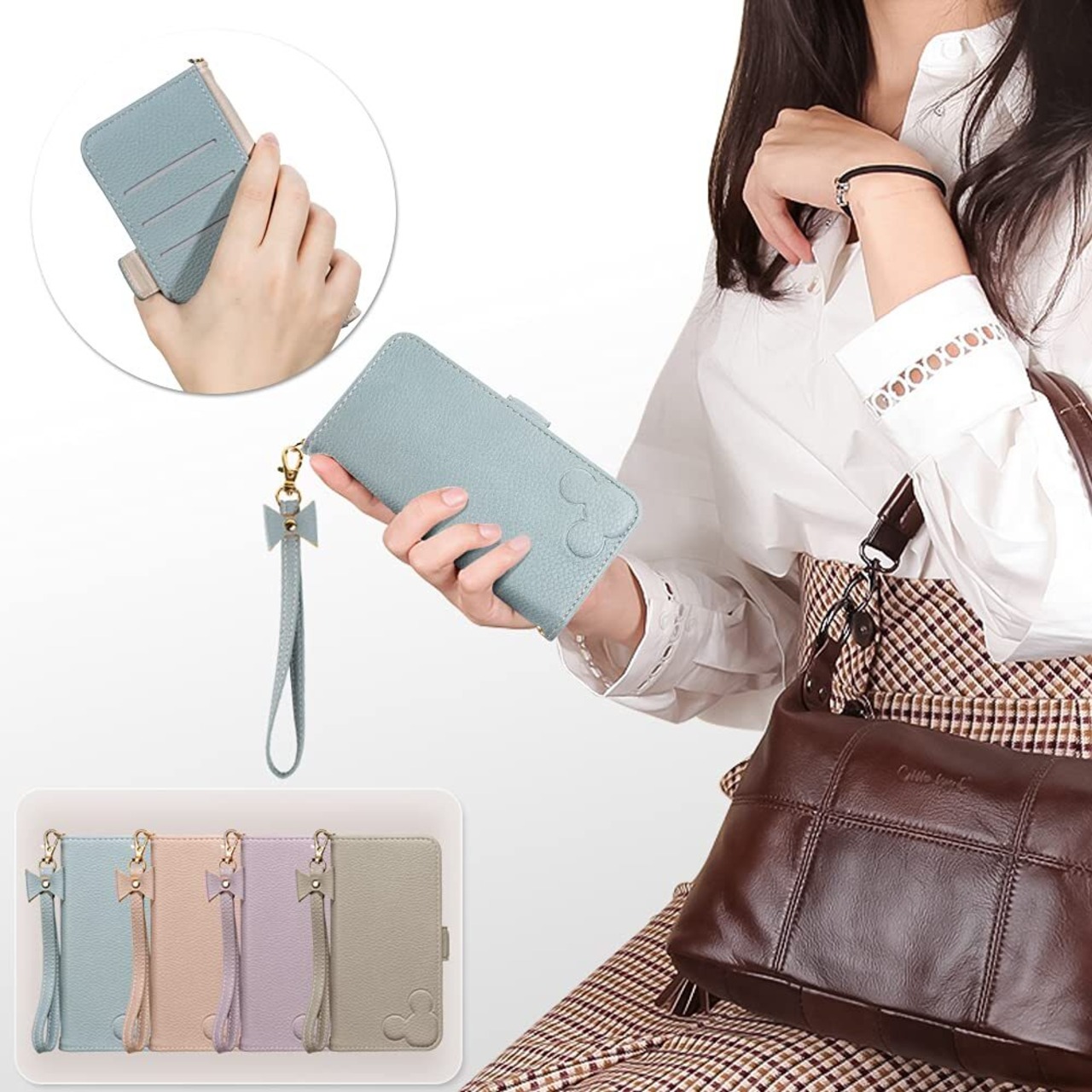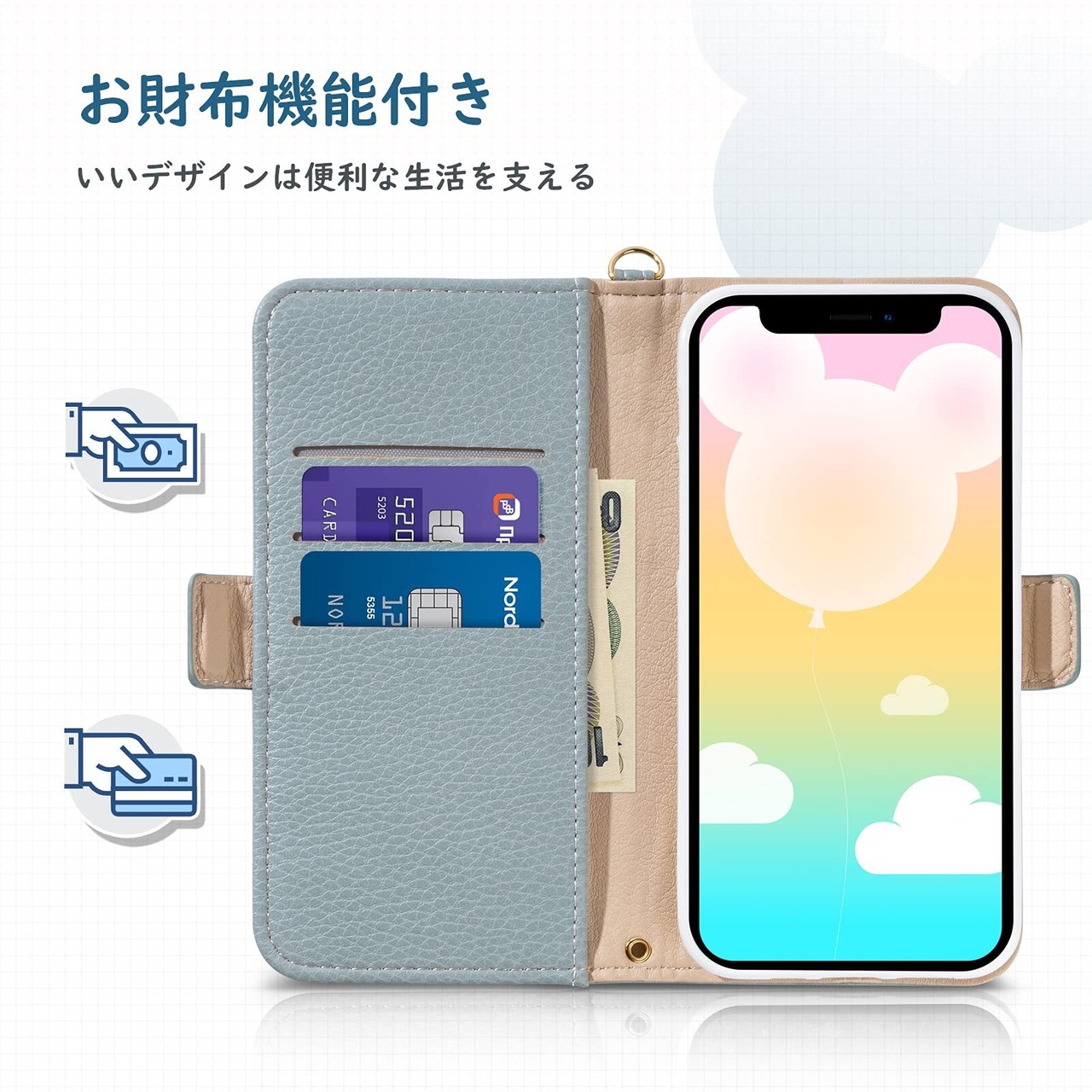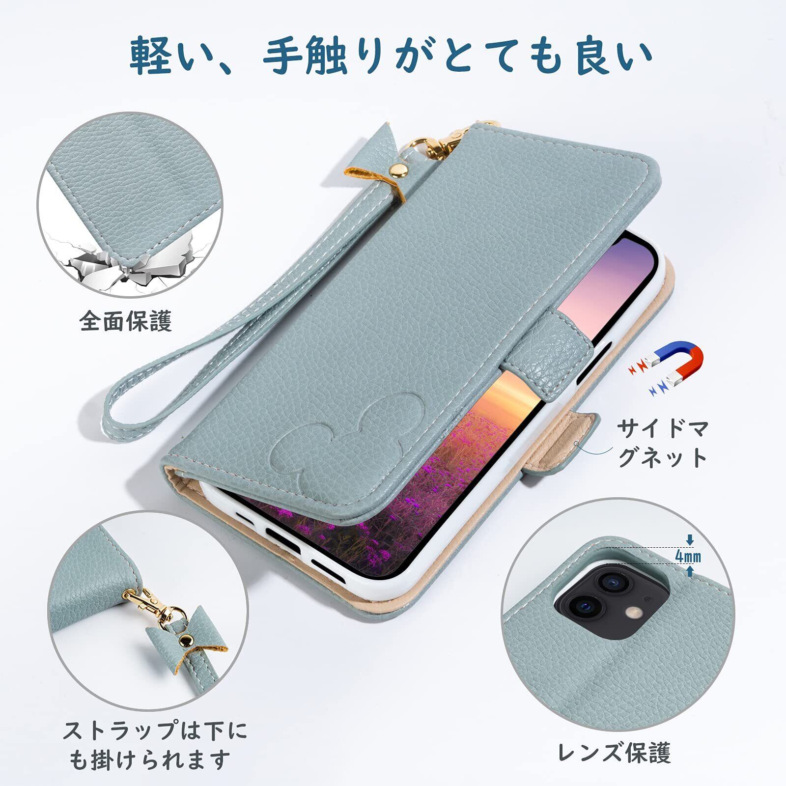 【上質な素材&かわいいデザイン】可愛い凸のミッキー耳シンプルのデザインですが、高級感が溢れ。上質なPU合皮レザーを使用し、高級感と軽さにこだわったスマホケースです。しっかりとした作り、縫製・質感・手触りにも優れています。精密なデザインで、装着状態でも電源ボタン、音量ボタン、コネクター等が問題なく利用できます。ギフトとしてもおすすめいたします。
