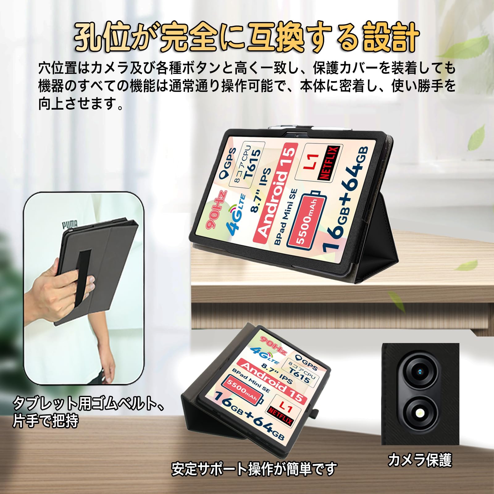 For BNCF Bpad Mini SE 8.7インチ タブレット保護ケース 調節可能 衝突防止 手持ちのゴムバンドです 防水防汚 擦り傷防止 良い手触り 角度調整 全面保護カバー 薄型軽量ケース(ブラック)
