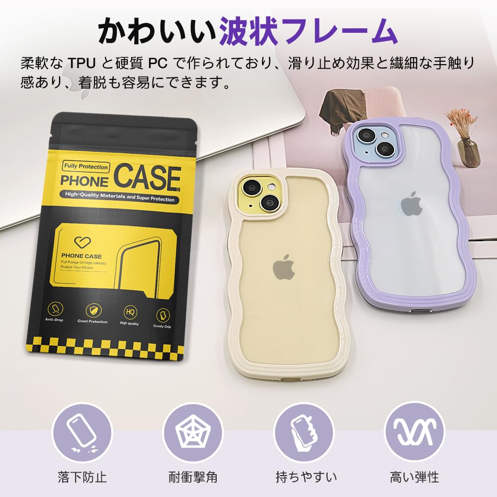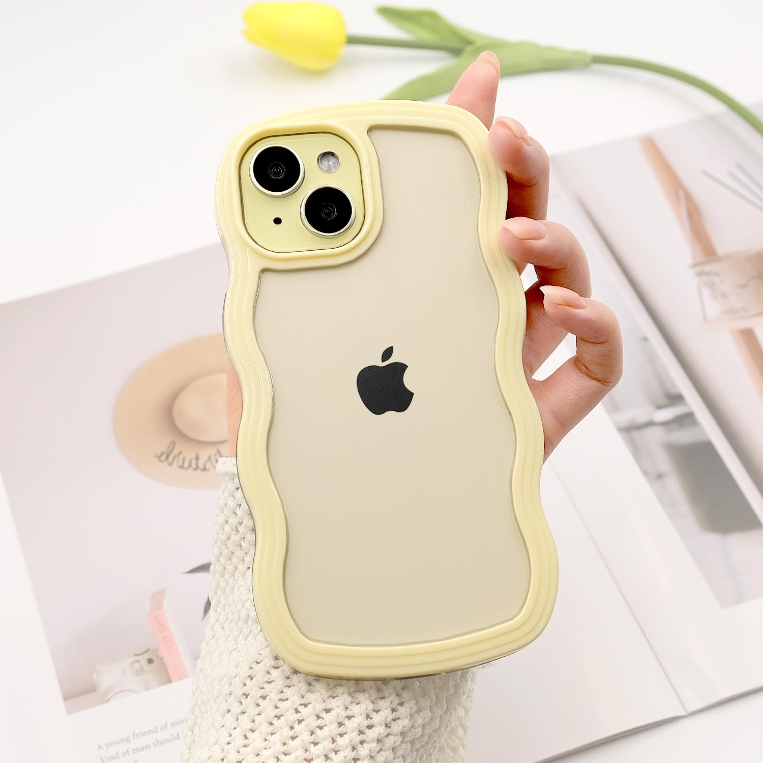 iPhone 14 ケース iPhone 13 ケース ウェーブ 波型デザイン おしゃれ 韓国 可愛い 透明 薄型 耐衝撃 女性用 人気 ケース ワイヤレス充電対応 ストラップホール付き アイフォン 14 13 ケース (イエロー)