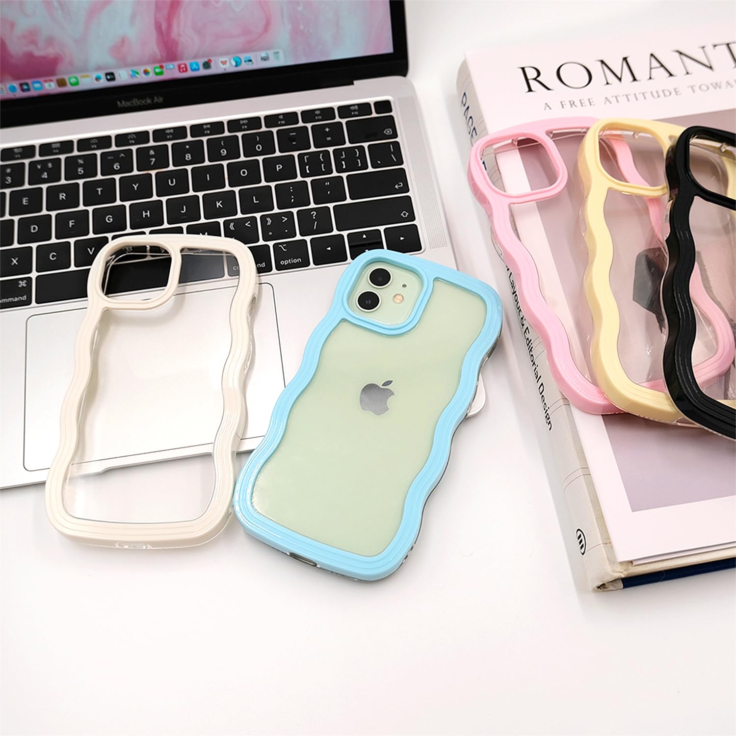 【かわい波状フレーム】美しいカーリーフレームはあなたの携帯電話をよりスタイリッシュで人目を引くものにし。ウェーブライン設計により手に馴染み込むような感覚で長く使っても疲れない設計になってます。滑り止め効果と繊細な手触り感あり、着脱も容易にできます。可愛い、流行りの韓国デザインです。