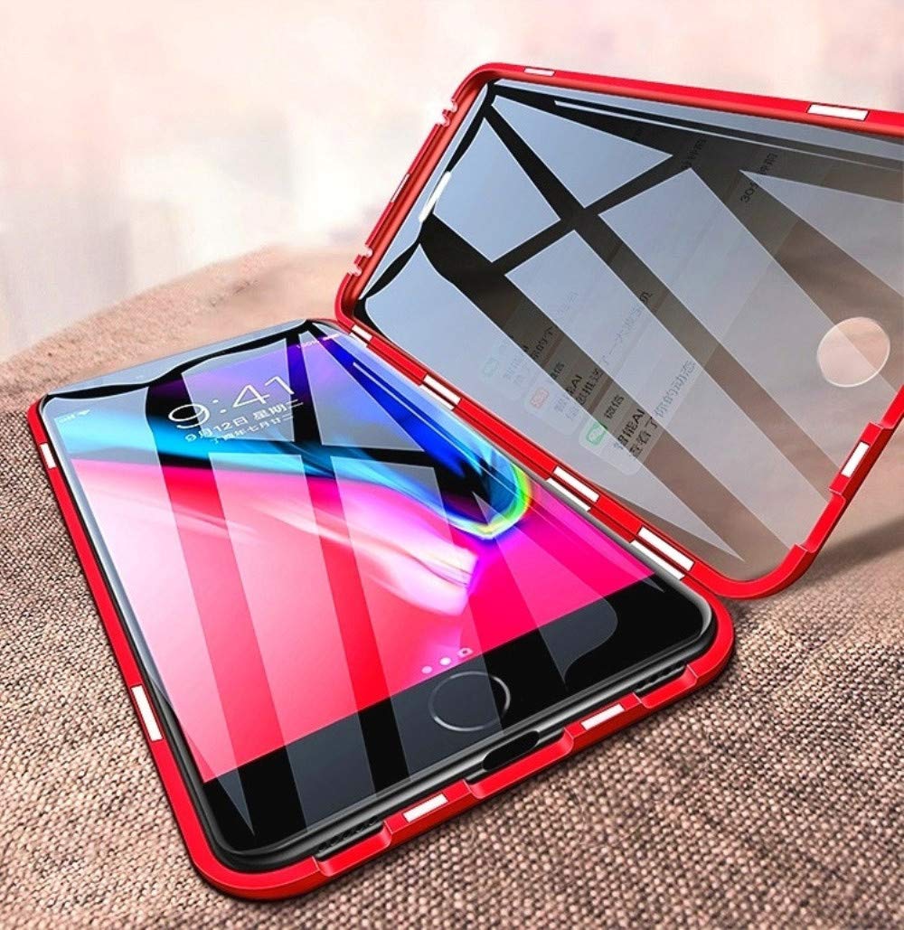 【特価商品】両面強化ガラス 覗き見防止iPhone8 Plus iPhone 7Plus ガラスケース アルミ バンパー 表裏 前後 両面ガラス 360°全面保護 マグネット式 アイフォン8 Plus アイフォン7 Plus カバー ガラス クリア 透明 全面ガラス (iPhone8Plus/7Plus 赤)