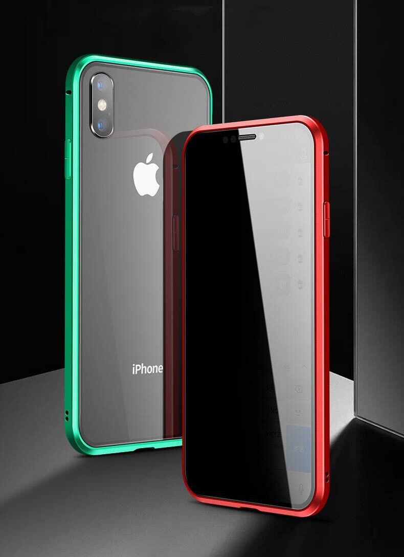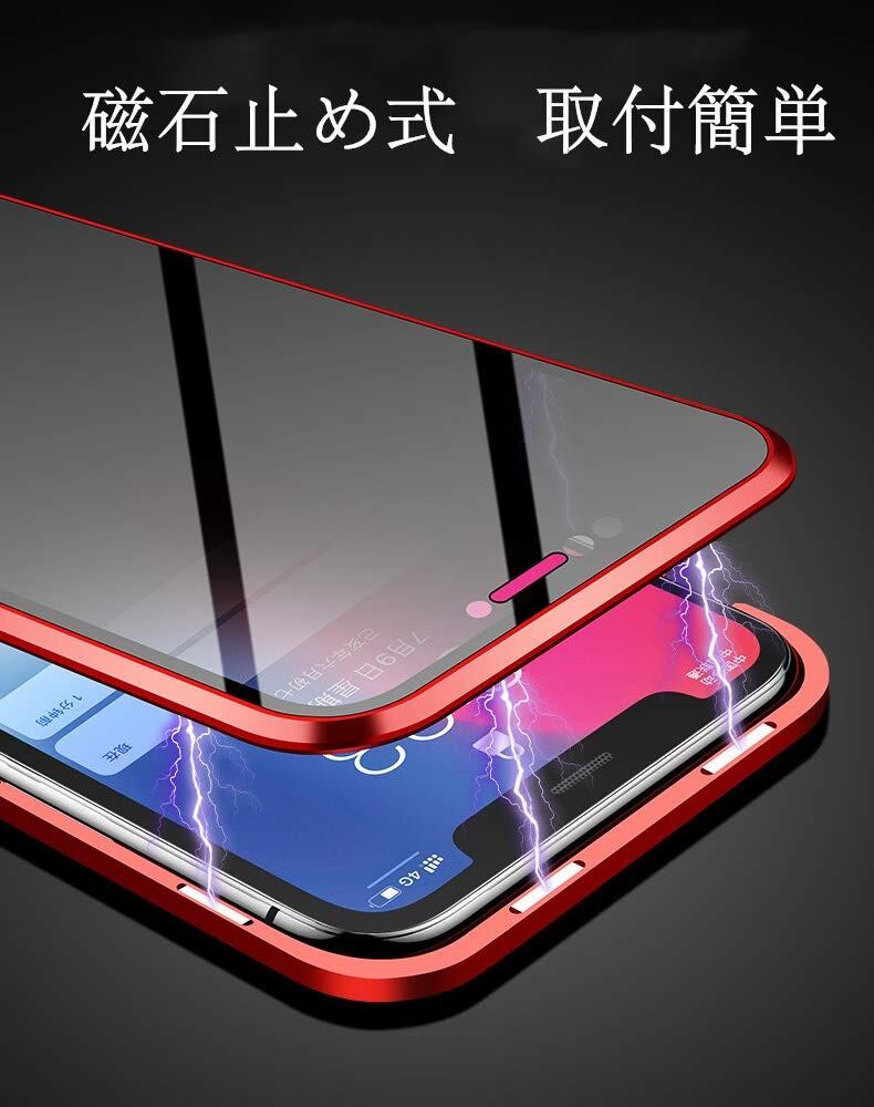両面強化ガラス 覗き見防止iPhone8 Plus iPhone 7Plus ガラスケース アルミ バンパー 表裏 前後 両面ガラス 360°全面保護 マグネット式 アイフォン8 Plus アイフォン7 Plus カバー ガラス クリア 透明 全面ガラス (iPhone8Plus/7Plus 赤)