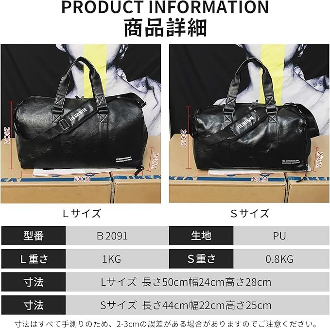 【属性】///Lサイズ:長さ50cm幅24cm高さ28cm 重さ:1kg /// Sサイズ:長さ44cm幅22cm高さ25cm 重さ:0.8kg ブラック、ホワイト、レッド3カラーご用意いただきます。高品質のPU素材を使用しており、丈夫で耐久性があります。撥水加工が施されているため、雨の日でも安心して使用できます。生地の特性上、匂いが強く感じられるものもございます。ご利用には差し支えありませんのでご安心ください。【バッグを軽量化するために、底部の生地には通気性のあるポリエステル生地を使用し、完全の撥水加工ではなくので、ご注意ください。】
