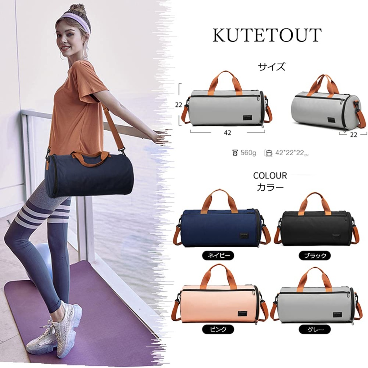 KUTETOUT スポーツバッグ ジムバック レディース メンズ 小さめ 普通の容量 ショルダー 防水 軽量 かわいい 2way 乾湿分離 シューズ収納 ヨガ ゴルフ ダッフルバッグ ボストンバッグ 男女兼用 (ネイビー)