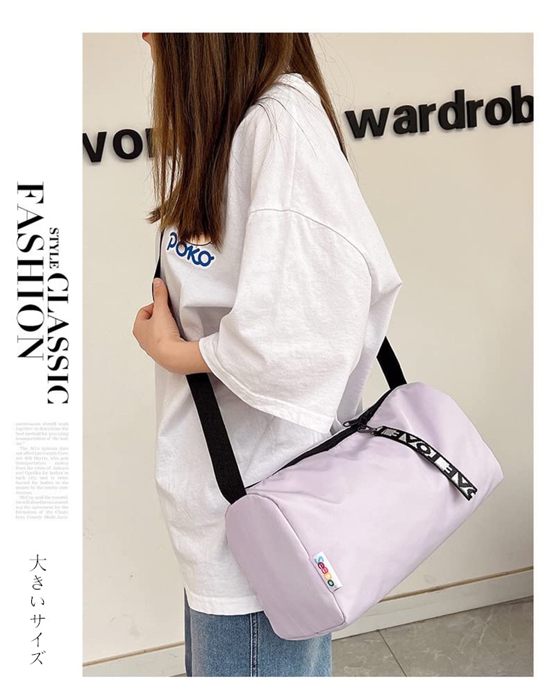 Gincci ミニ ボストンバッグ メンズ レディース ショルダーバッグ 斜め掛けバッグ ミニバッグ ドラムバッグ ヨガバッグ スポーツバッグ 旅行バッグ トラベルバッグ アウトドア キャンプ ジム 軽量 (大きいサイズ-パープル)