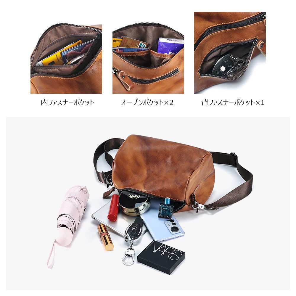 【新春セール】[Whatna] アンティーク風合い鞣し 牛 革 ミニショルダーバッグ メンズ 2way 斜め掛け ミニボディバッグ ミニ胸バッグ 小型ポシェット 小さめかたかけバッグ カジュアル フォーマル ビジネス 通学 通勤 肩掛けミニバッグ 自転車かばん | libertyislan