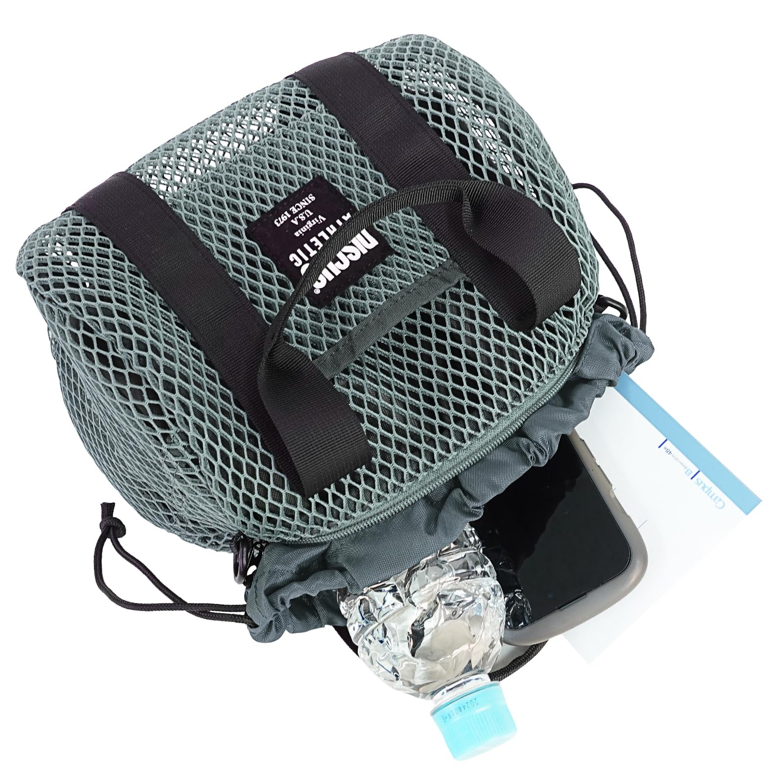 ストリート系で人気のメッシュマテリアルを使用した2重構造のミニボストンバッグ