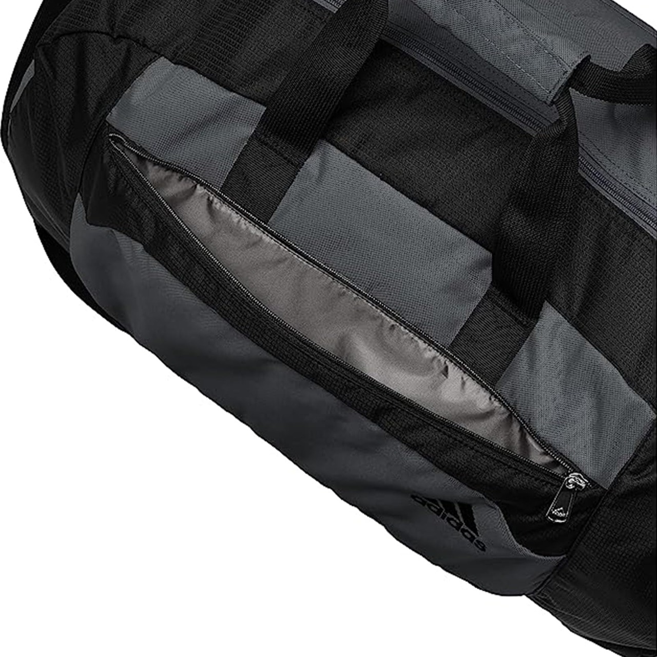 アディダスのアイコン「スリーストライプス」を前面に配したボストンバッグ。