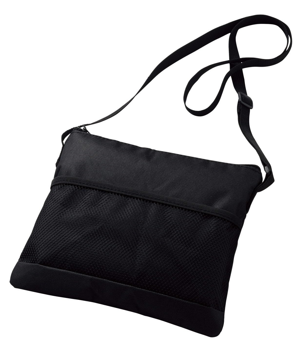 サコッシュ 黒 ブラック シンプルな肩掛け ショルダーバッグ 薄型 メンズ レディース 小さめ 斜めがけ 散歩 ウォーキング 薄手 外ポケット