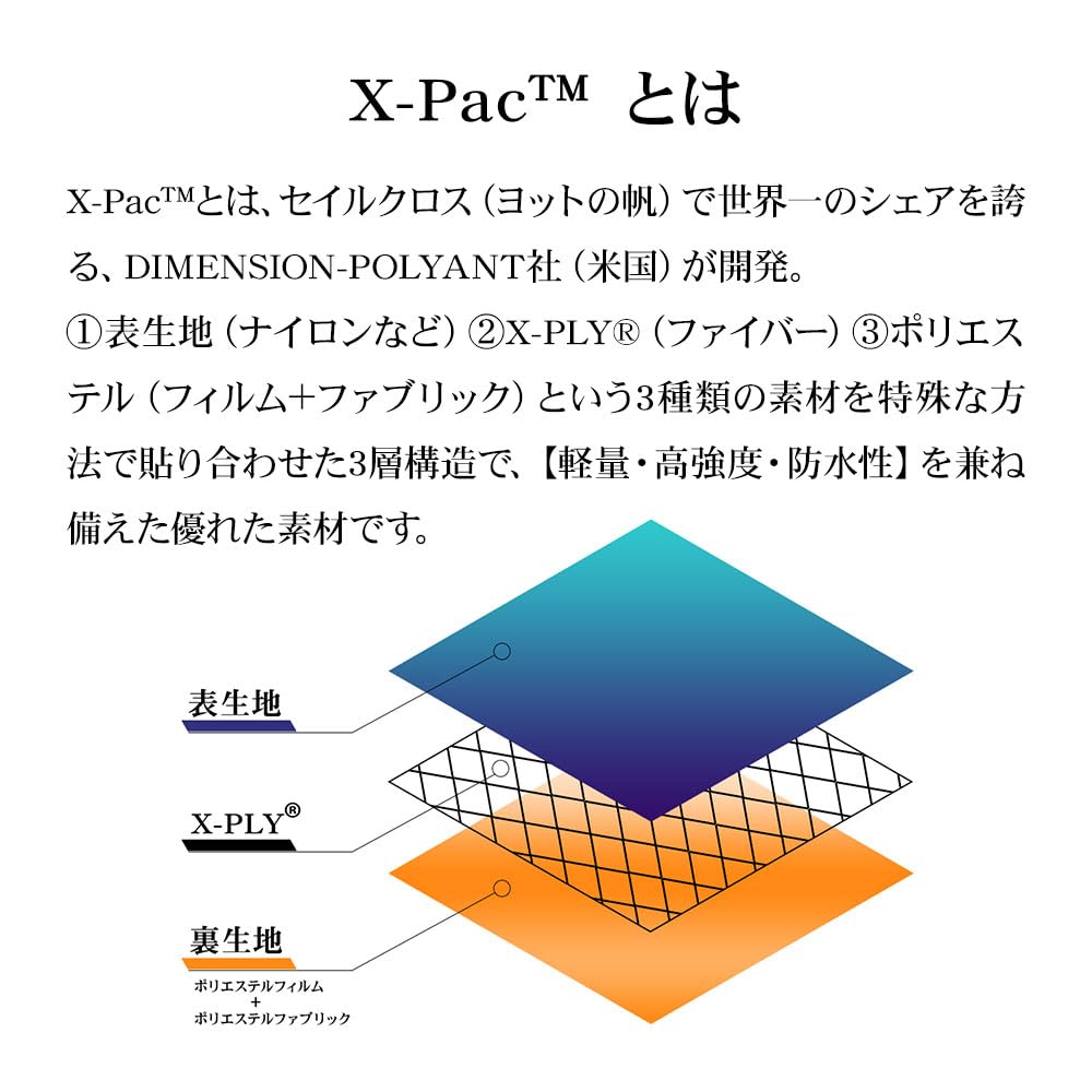 表地には軽量・高強度・防水性に優れた軽くて丈夫な素材『X-pac(VX21)』を採用しています。