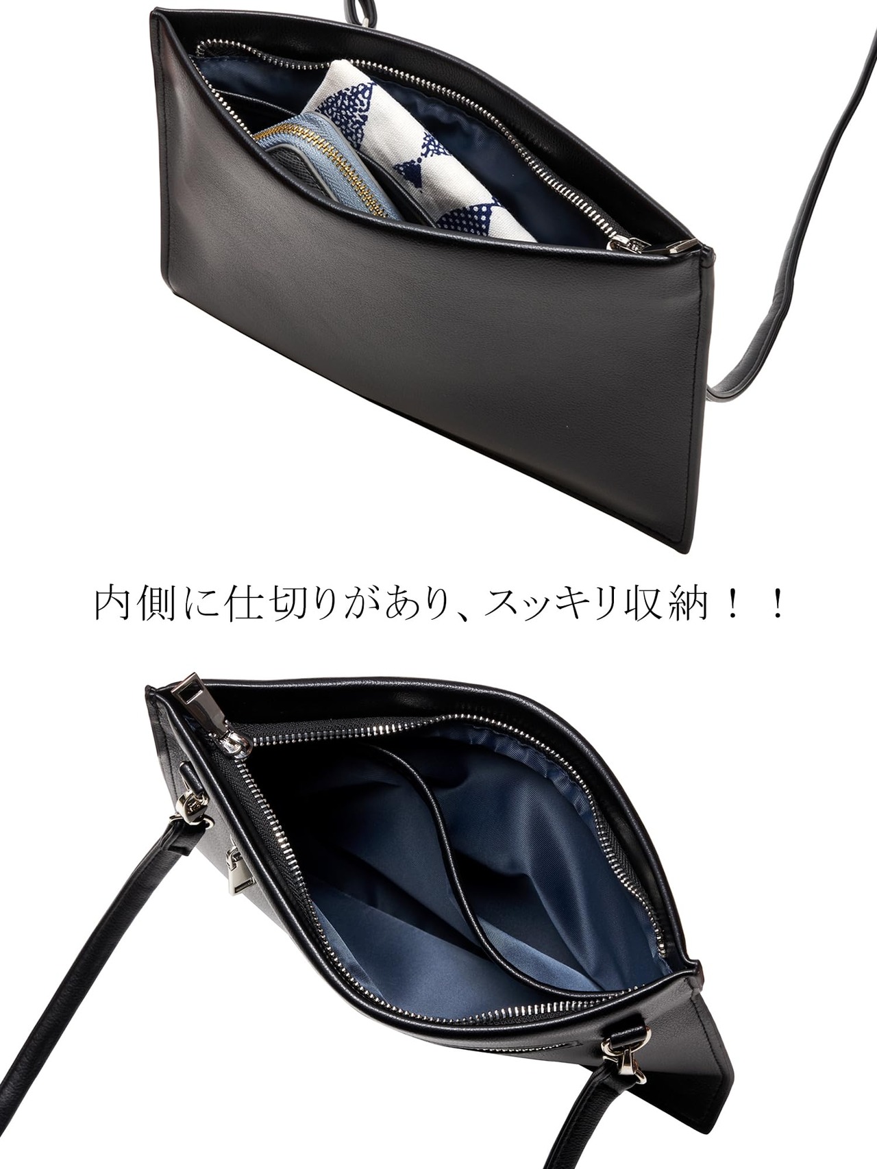サイズ:幅28cm×高さ20cm 重さ:バッグ本体約180g、ショルダーベルト約53g 素材:肉厚のPUレザー(安いでも本革に負けない圧倒的なクオリティー。) 「収納」 背面:ファスナーポケット×1 内部:仕切り付き
