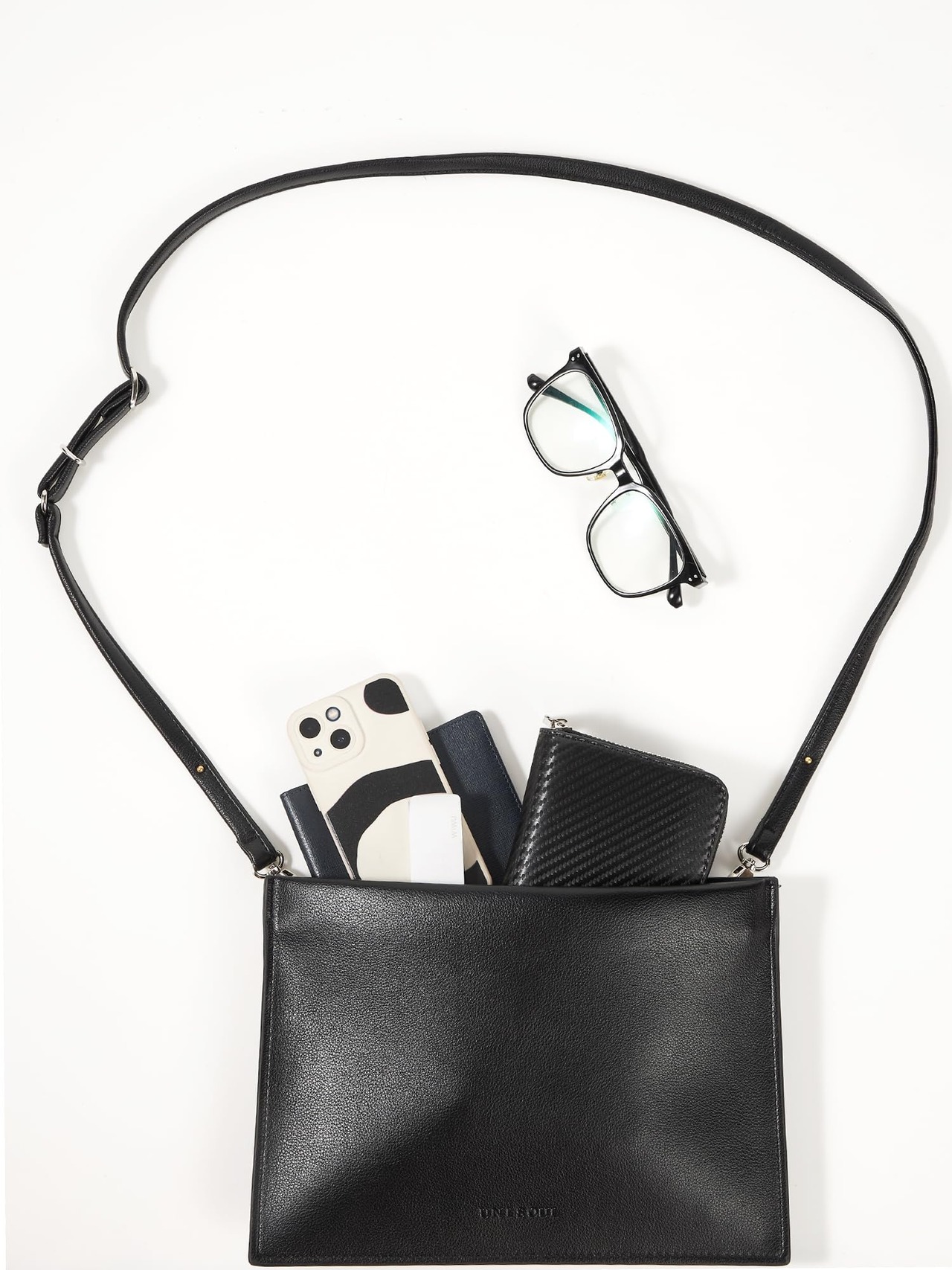 [UNISOUL] サコッシュ メンズ サコッシュバッグ 2wayファスナー レザー 革 軽量 シンプル アウトドア ショルダーバッグ