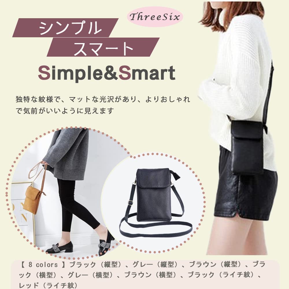 [ThreeSix] スマホポーチ レディース ショルダーバッグ スマホポシェット 携帯ポーチ 長さ調節可能 斜め掛け シンプル 軽量