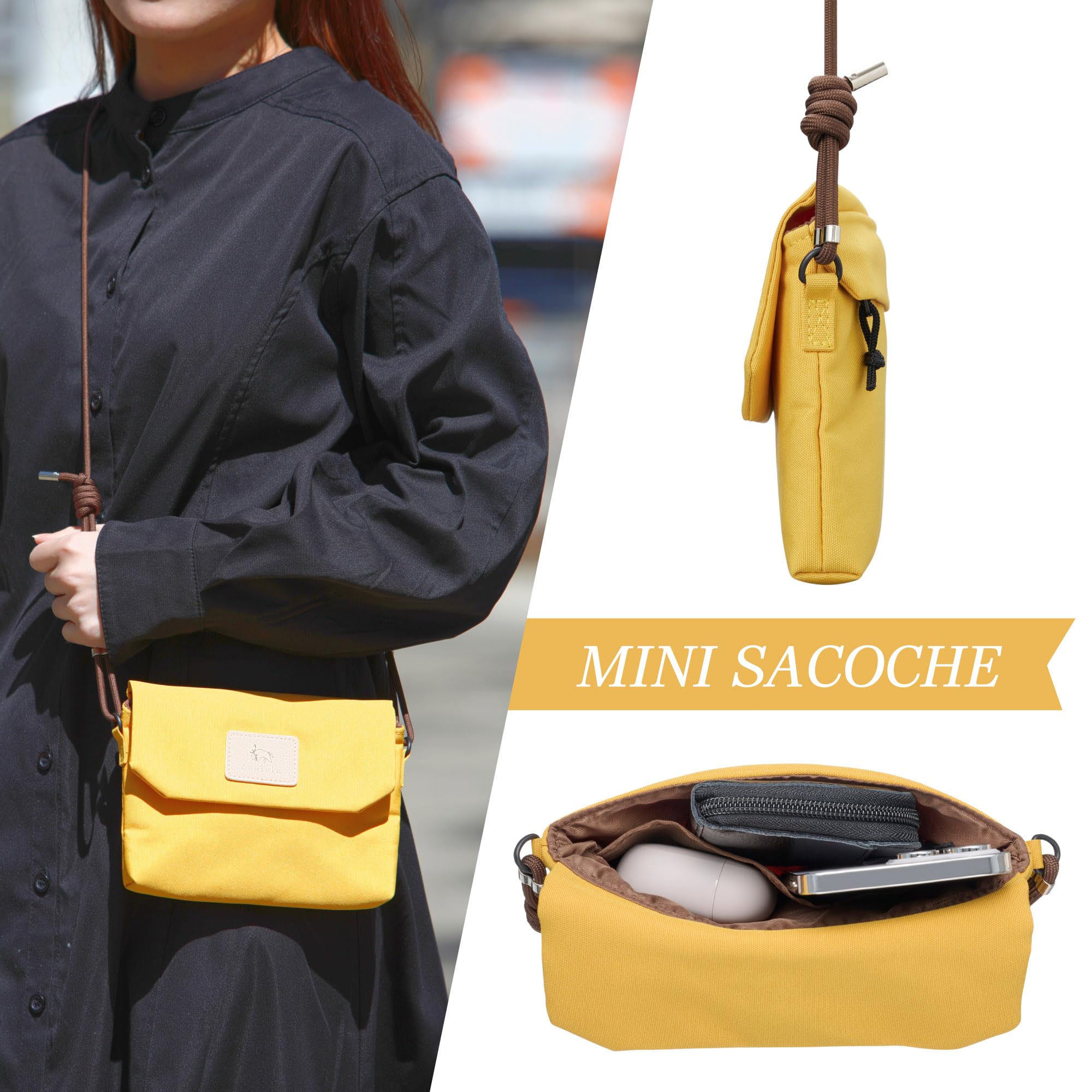 スマートフォンやお財布など、必要最低限の身の回りアイテムをコンパクトに収納し、身軽にお出かけできる軽量・薄型のサコッシュ