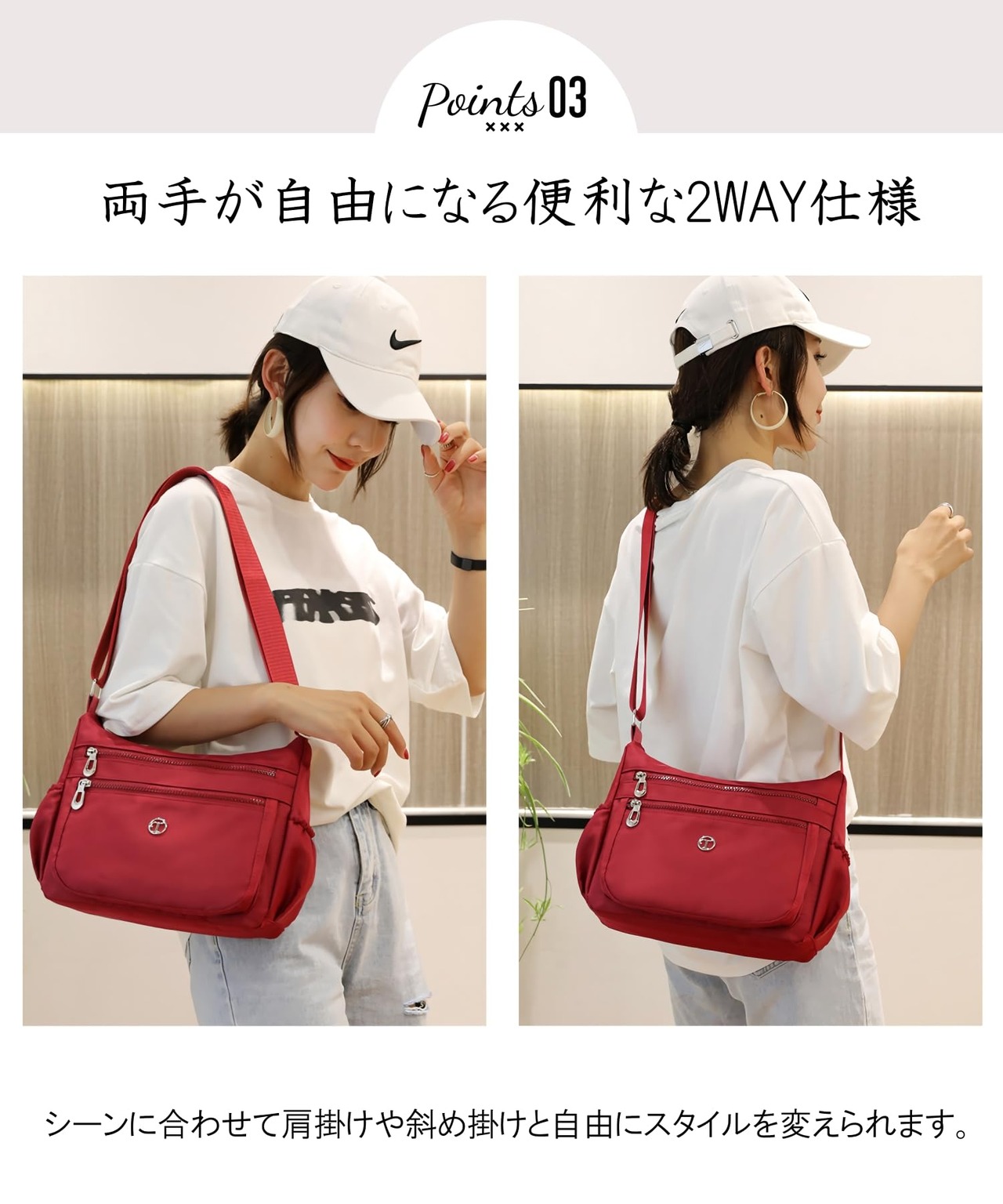 [Raizm] 【多ポケットで見た目以上の収納力】 ショルダーバッグ 斜め掛け 肩掛け レディース 小さめ 軽量 かばん ナイロン