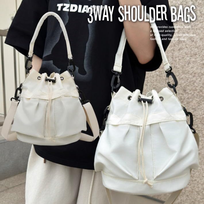 [LTG] 巾着バッグ ドローストリングバッグ ショルダーバッグ バケットバッグ 2way 肩掛け 手提げ ショルダー 軽量 ナイロン レディース メンズ 7986821
