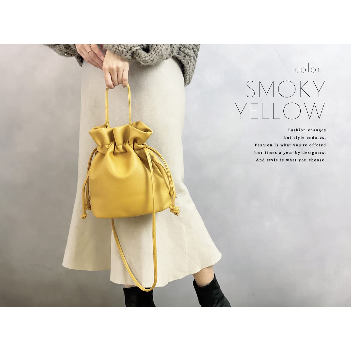 ころんとしたフォルムの2way巾着バッグ。 柔らかく上品なフェイクレザー素材で、 季節を選ばずオールシーズンお使いいただけます。