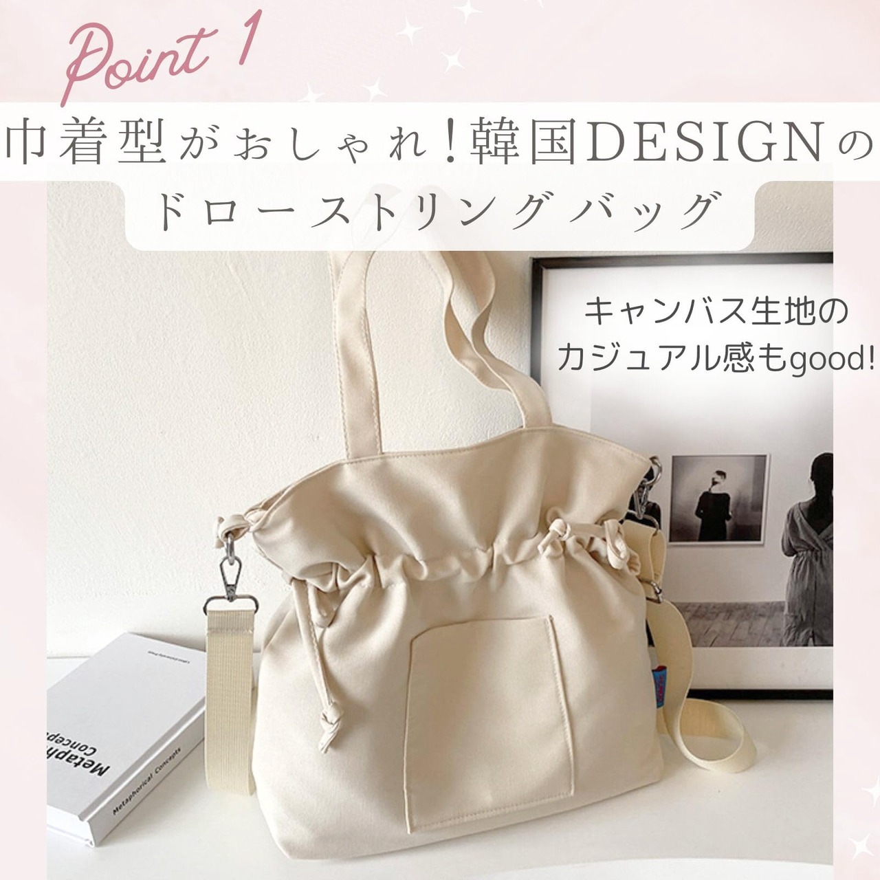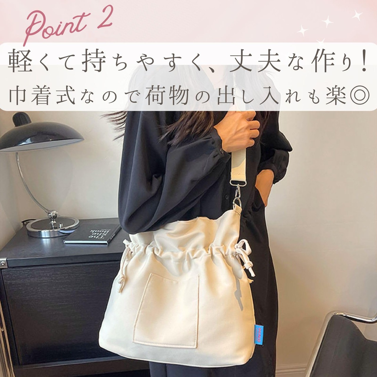 【新春セール】[ハルジオ] ショルダーバッグ 巾着 レディース ドローストリング 巾着バッグ ショルダー キャンバス バッグ 斜めがけ 大きめ 巾着ショルダーバッグ おしゃれ かわいい シンプル 大容量 ブラック 黒 ベージュ ブラック 韓国