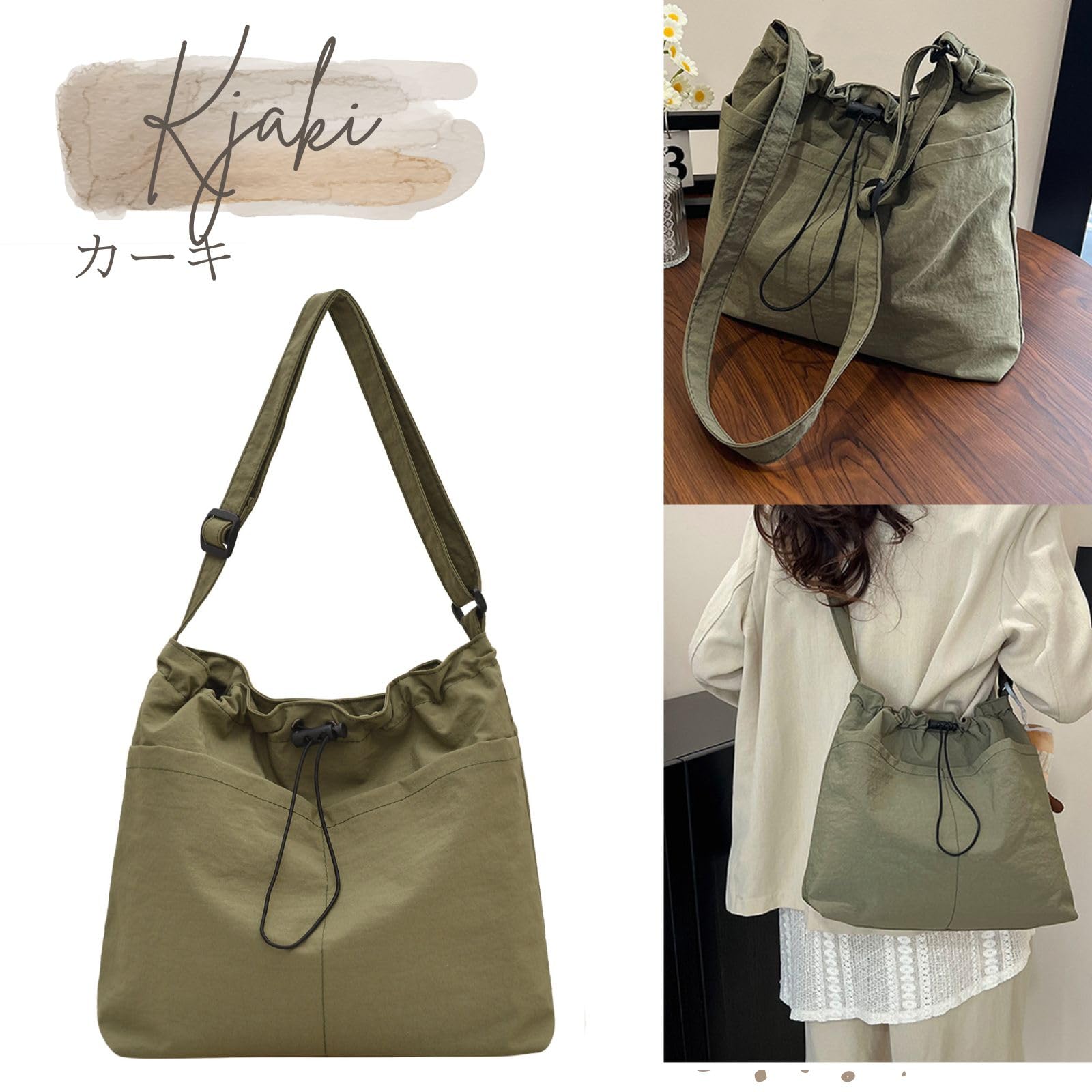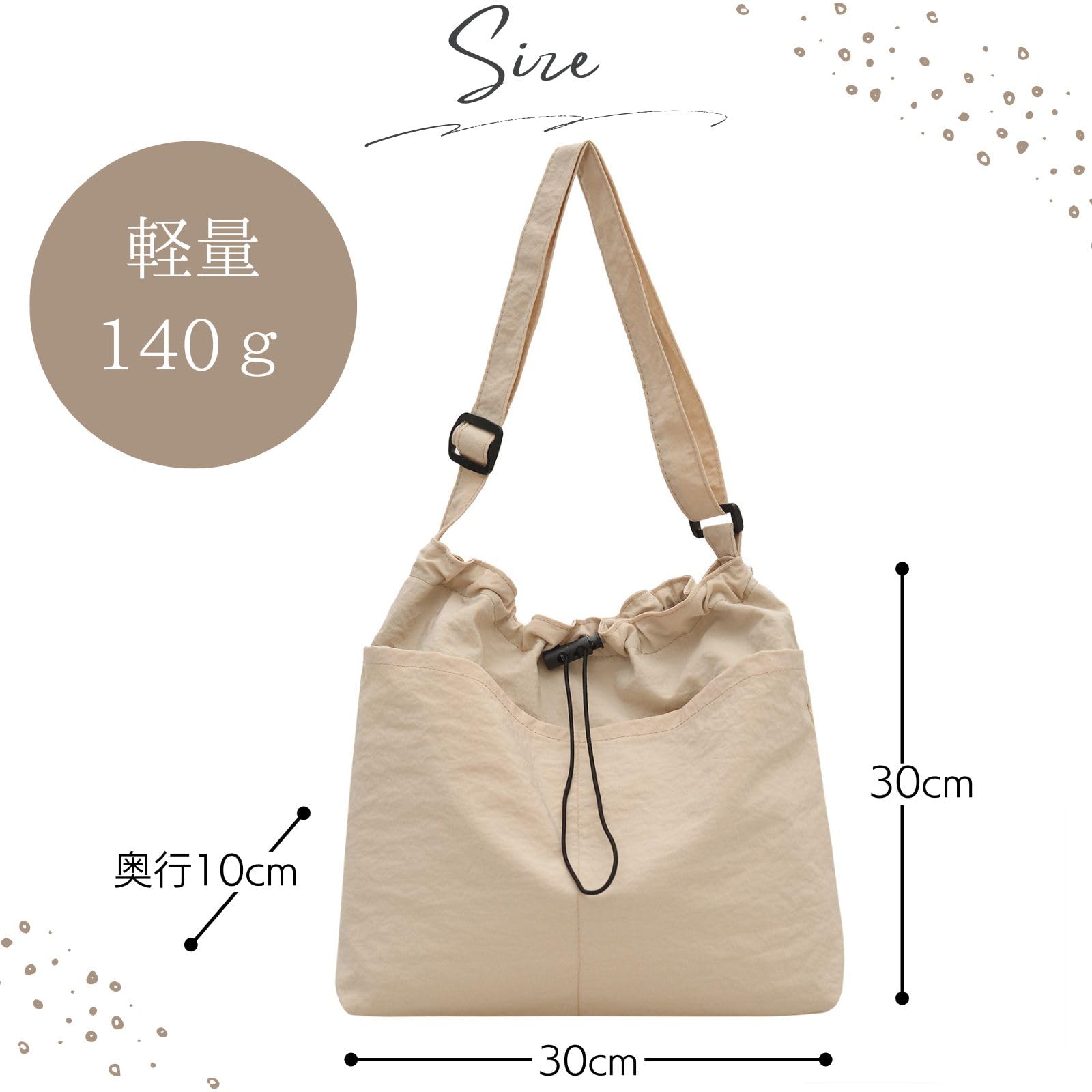 【巾着×ショルダーの優秀デザイン】開閉しやすい巾着タイプで、荷物の出し入れもスムーズ。 長さ調整可能なショルダーストラップ付きで、肩掛けも斜め掛けもOK。