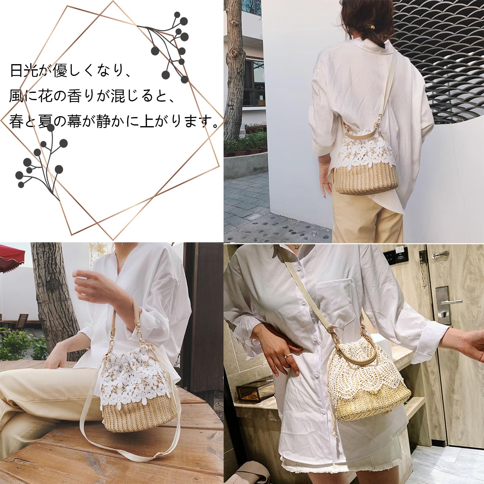 [Zeaiisiy] ストローバッグ 巾着バッグ ミニショルダーバッグ レディース 軽い 夏 かわいい