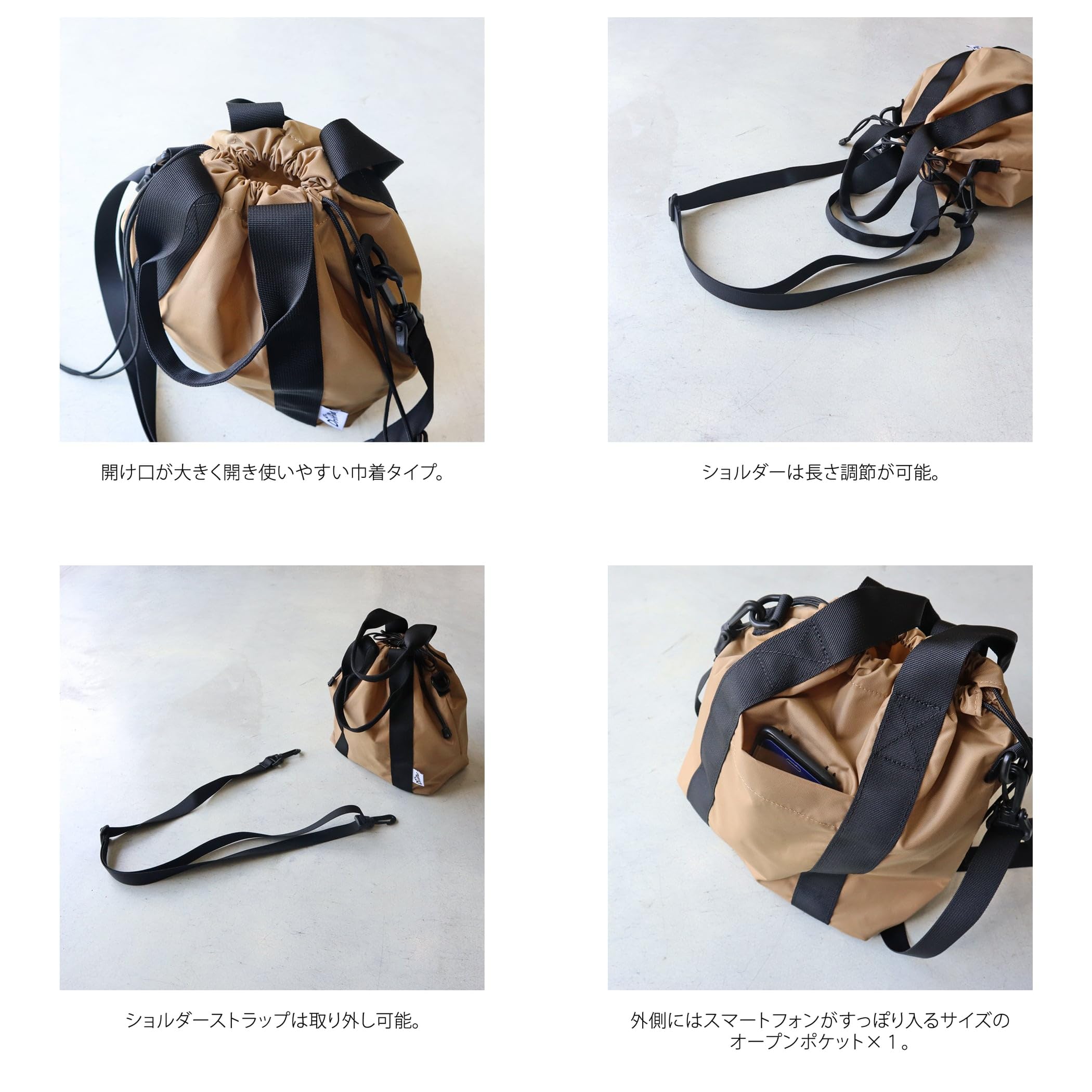 天面部分の紐を絞って巾着バッグ的な使い方も可能な2wayショルダーバッグ
