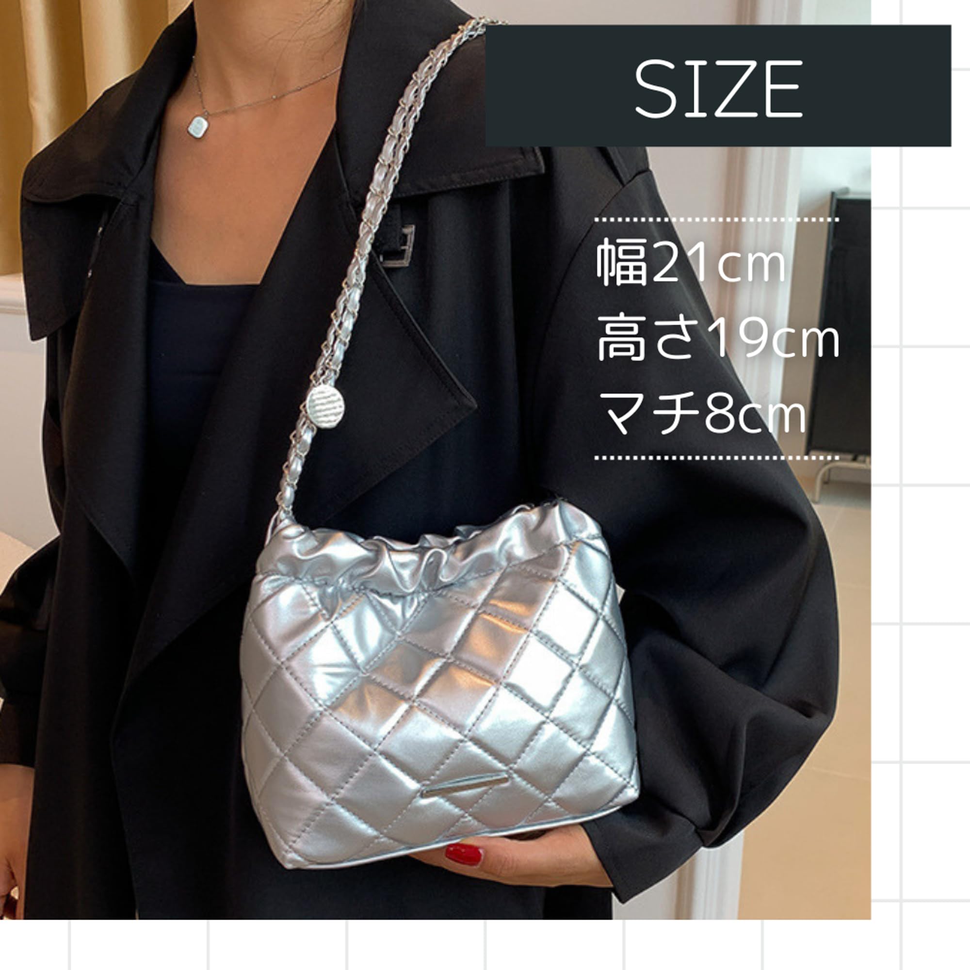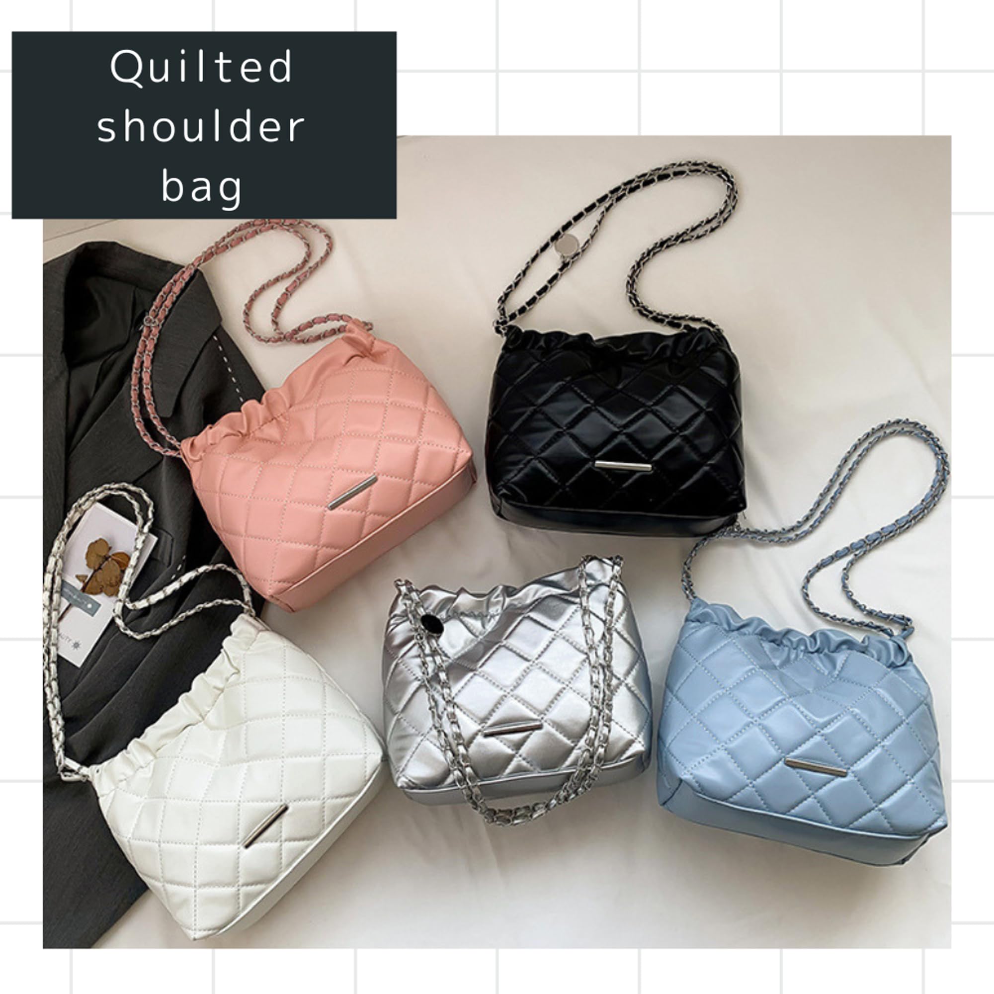 【特徴】小ぶりなサイズ: 普段使いに最適なコンパクトサイズです。財布・ポーチ・折り畳み傘・スマートフォンなど収納可能です。 キルティング素材: 可愛く、デザイン性もバッチリです。 柔らかい質感: 丸みのあるデザインでころんと可愛い シンプルなデザイン: ショルダーがチェーンデザインで上品な雰囲気です。オン・オフ問わずデイリーに使えます。 軽量: 持ち運びが楽ちん 耐摩耗性: 丈夫で長く使えます。 使いやすい: バッグの口部分にマグネットボタンを使用していて開け閉めが簡単です。 プレゼントにも: 誕生日、クリスマス、ハロウィーン、友人、家族へのプレゼントに最適。