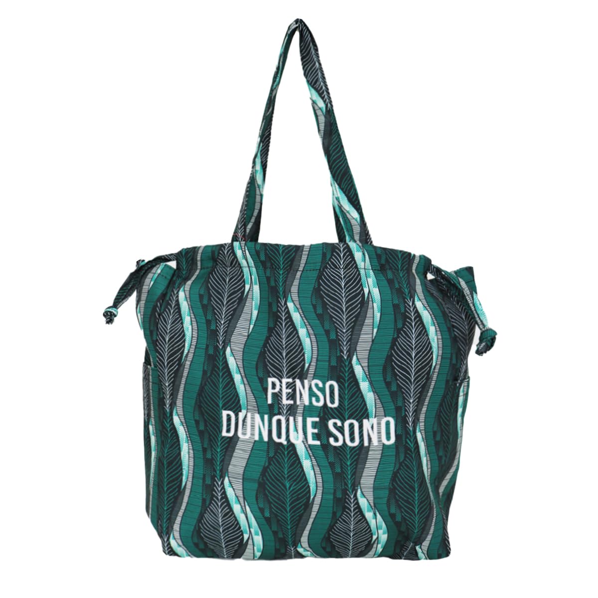 総柄プリントデザインがエスニックでおしゃれなa4サイズで大容量の巾着トート。 サイドに二つポケットがあり小物収納が便利。 速乾性のあるポリエステル製で雨の日も安心。 リゾートスタイルにぴったり◎