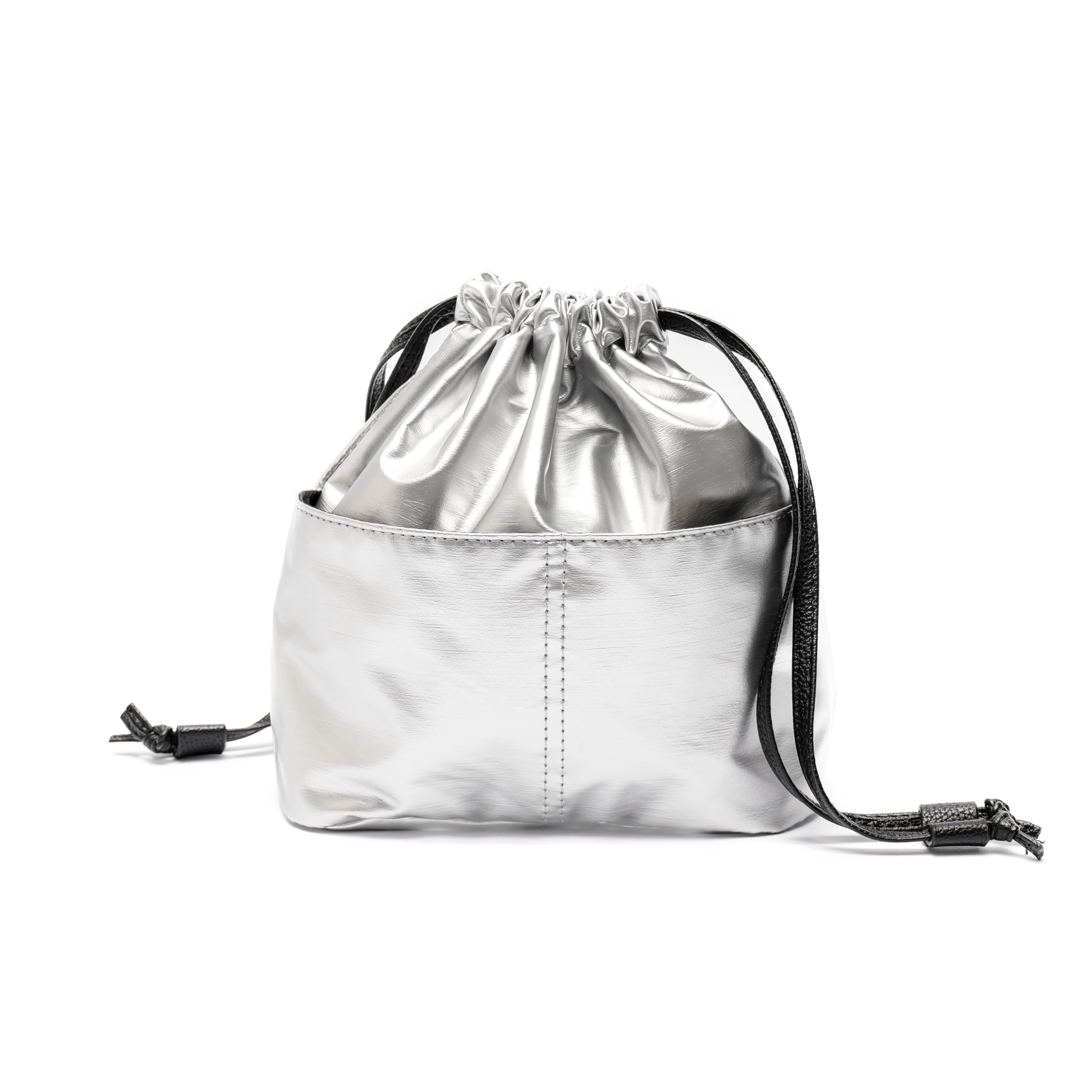 ・トレンドのメタリック素材を使った巾着デザイン。 ・どんなスタイルにも合うブラックと上品な光沢感が輝くシルバーの2色展開。 ・年齢や性別に関係なく持てるカジュアルかつフォーマルなバッグです。
