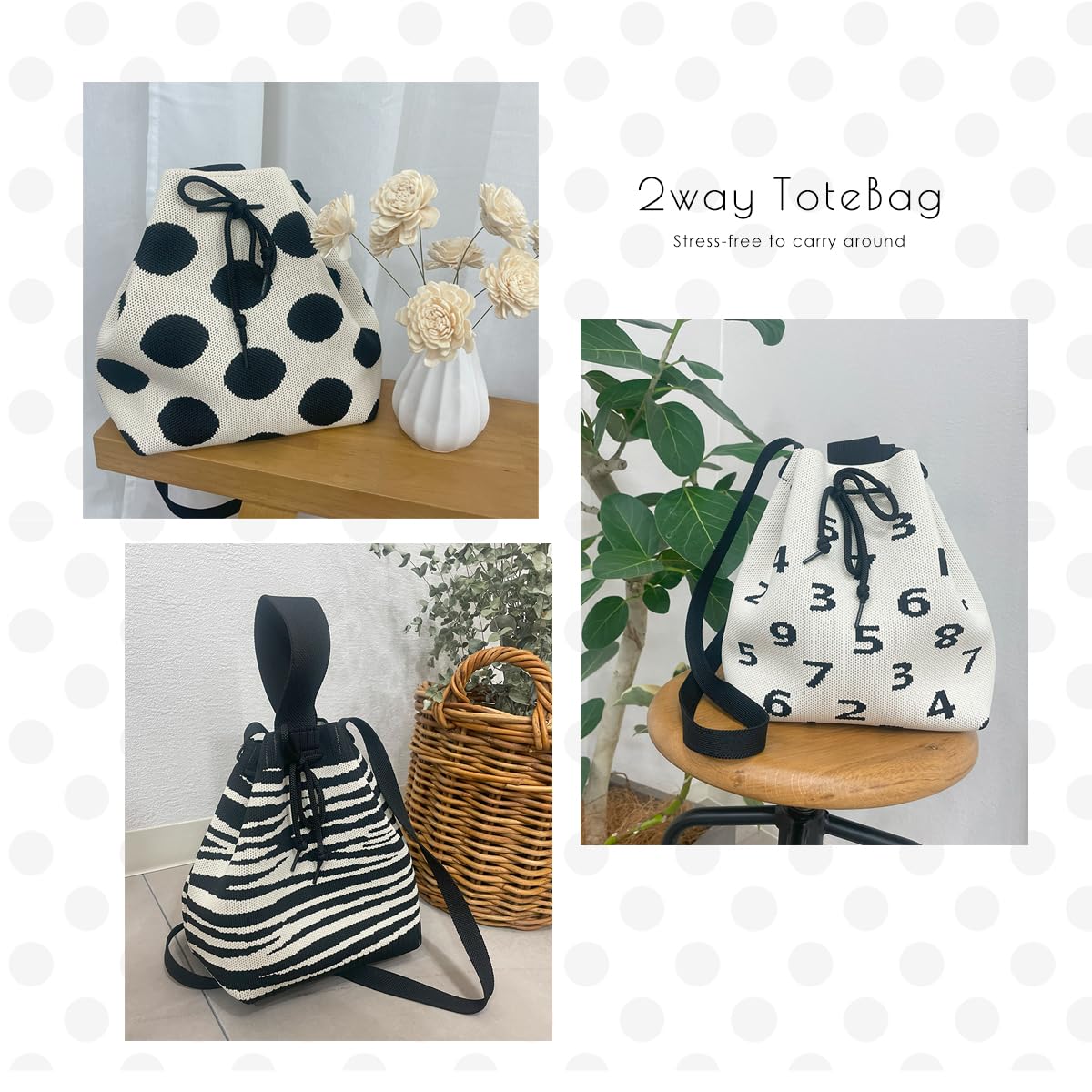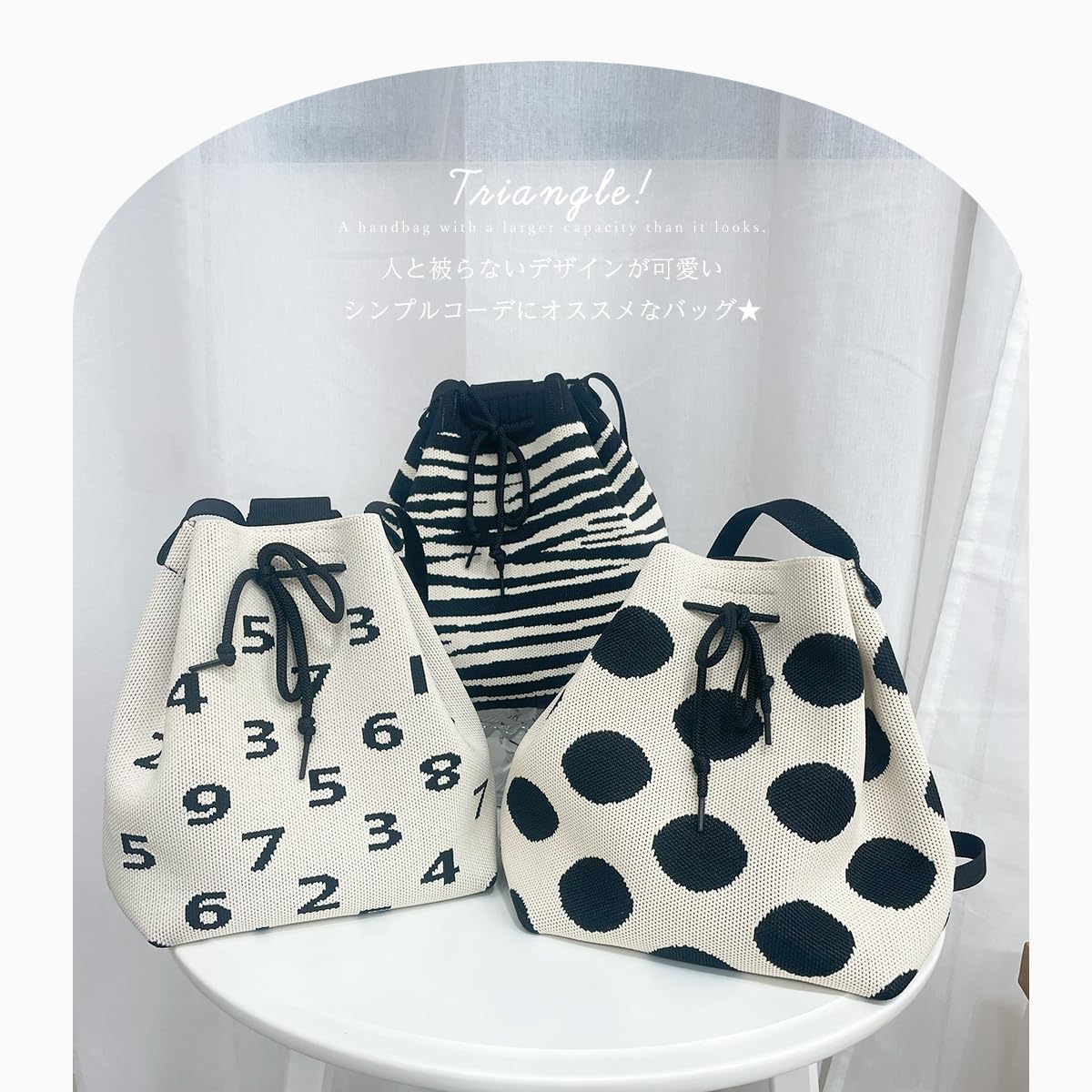 [ジゼル] ショルダーバッグ 巾着バッグ 2way 巾着型 小さめ 自立 軽量 斜め掛け ニットバッグ ミニバッグ サブバッグ レディース