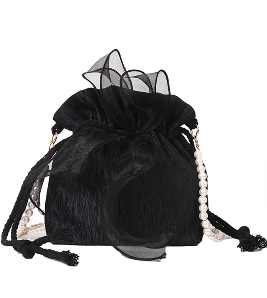 【世代問わず愛されるデザイン】トレンド感のあるチュール素材を使用したころんと可愛い巾着バッグ。