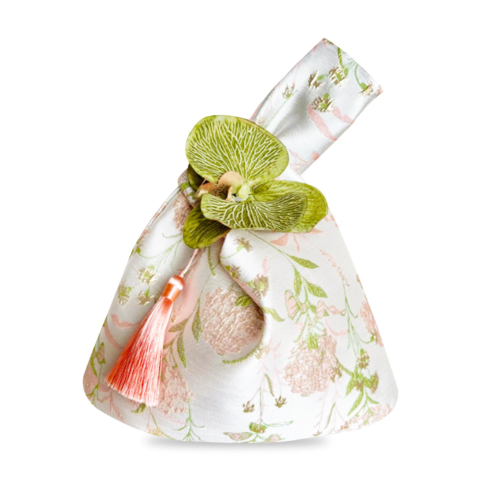 [DIFEIUKI] 和装 バッグ レディース 巾着バッグ タッセル付き 手提げバッグ おしゃれ かわいい 花柄 ポーチ 小銭入れ 浴衣用 浴衣バッグ 花火大会 七五三 女の子 夏祭り 成人式 結婚式 好意バック 片手 持ち ハンドバック 胡蝶蘭付き