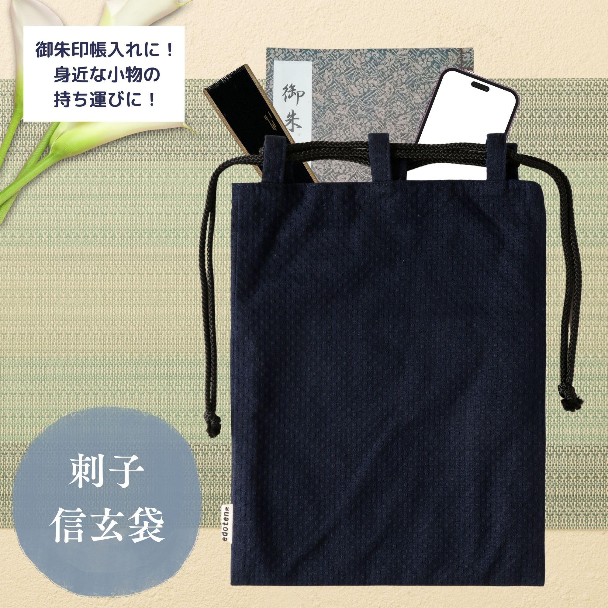 刺子生地を使用した信玄袋です。内ポケット付きでペンや携帯などの小物収納が便利です。