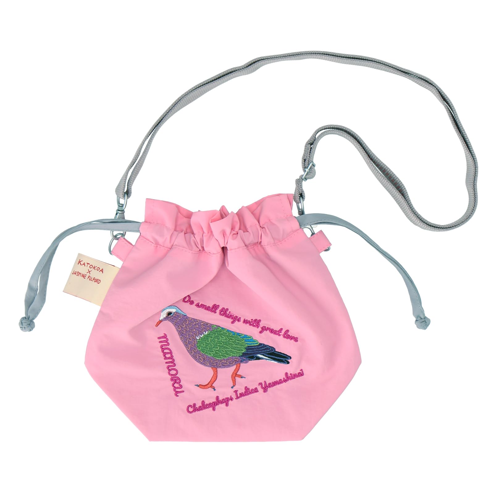 【KATOKOA(カトコア)のmamoru巾着】たっぷりサイズの刺繍で生きものたちを表現しました。取り外し可能なショルダーベルト付きです。ベルトを付けてショルダーポーチとして、取り外して巾着ポーチとして、用途やシーンに合わせて自由にコーディネイトできます。中生地には、環境に配慮した再生ポリエステルを使用しています。