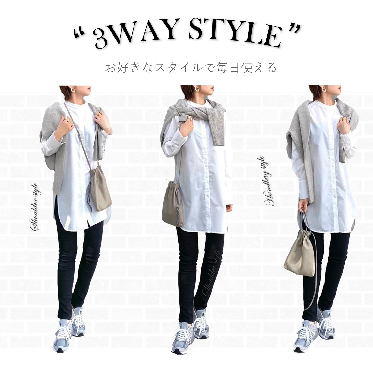 手提げ、肩掛け、斜めがけとシーンに合わせて3wayで使え、巾着型とサコッシュ型のツータイプでお使い頂けます。結婚式などフォーマルなシーンでは手持ちで、キャンプなどアクティブなシーンでは斜め掛けでお使い頂けます。