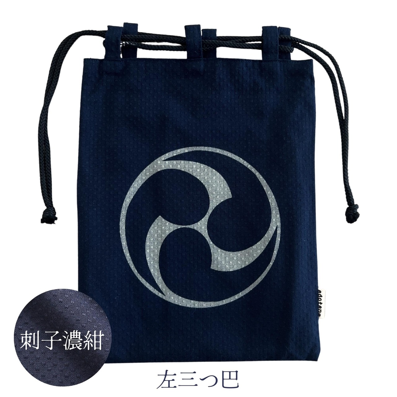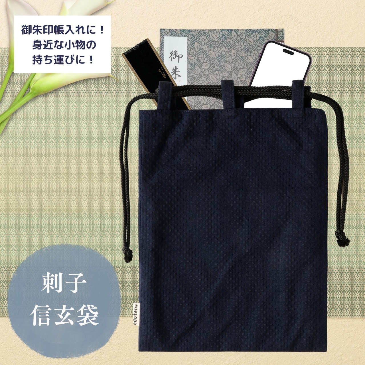 刺子生地を使用した信玄袋です。オリジナル抜染柄入り。刺子作務衣や、浴衣とお揃いで。
