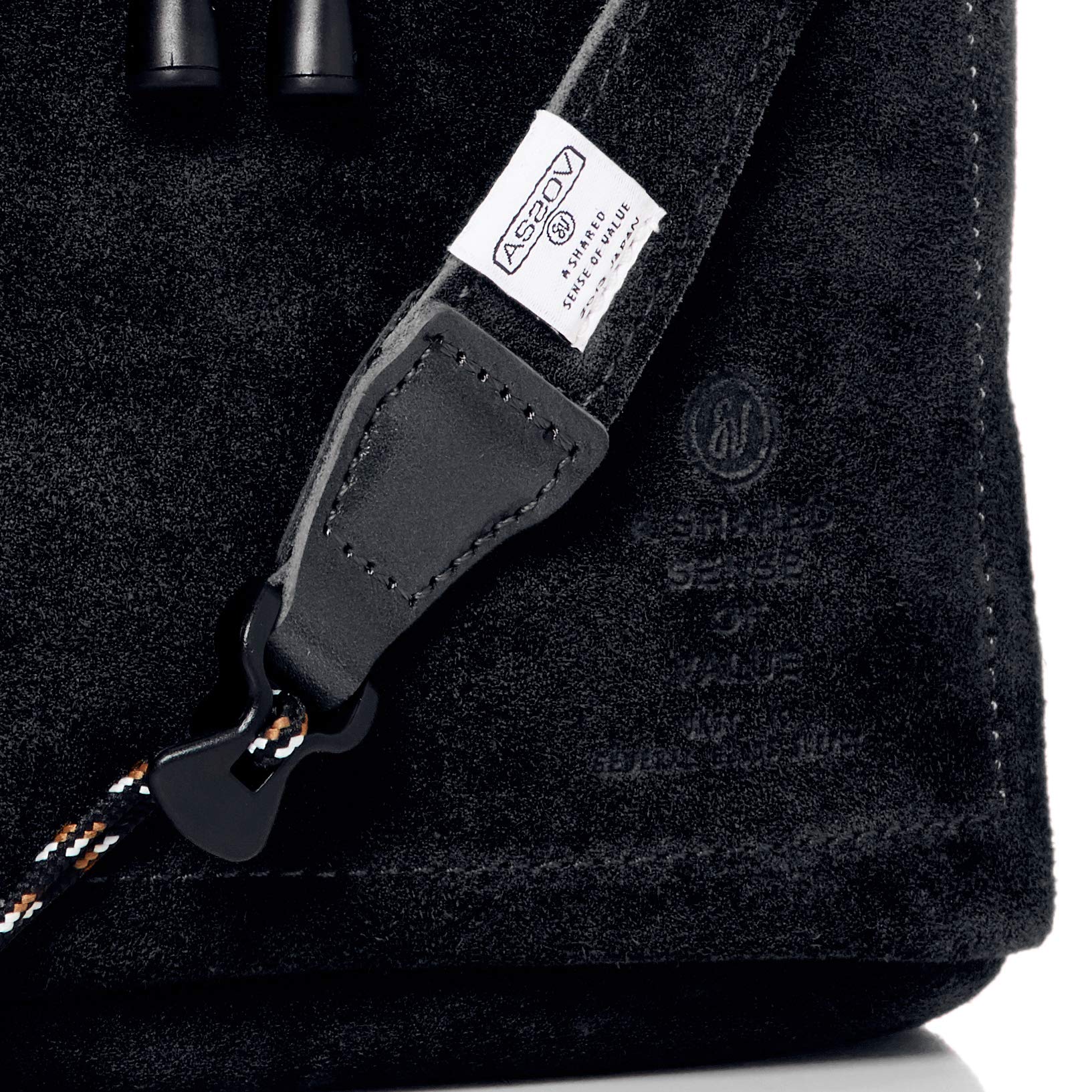 カウレザースェード ( 防水加工) -素材説明- 本体素材には北米産の優良原皮を使用した希少な2 ミリ厚の防水スエード革を使用しております。 スエード革はクロム鞣しすることによりしなやかさと強度を持つ革になります。 表面加工は北米原皮の強靭な下地の為、2 度ペーパーで表面の起毛を揃え整えていきます。 染色は革自体の厚みを考慮し 2 度行い 1 度目は革の芯に色を入れる為軽く染色し、2 度目の染色により革全体をしっかり染めます。 2度の染色ともに防水撥水剤を入れる事でより、防水撥水性の強い素材に仕上がります。 付属レザーには北米産のステアレザーの優良原皮を、環境汚染の誘因となる薬品、有害物質の使用を排除し、ベジタブルタンニンで鞣された環境にも人体にも優しいヌメレザーを使用しています。 内装には 420 デニールのブライトナイロン糸をオックス織りにした生地に PVC(塩化ビニール)をコーティングした生地を使用しているため防水性・強度に優れています。 また止水 ZIP を使用している為、防水性に優れた製品となっております。 ショルダーの柄紐は AS2OV オリジナルの別注柄紐を使用しており、ネームは本体前側に AS2OV オリジナルの刻印、引手も AS2OV オリジナルの引手を使用し、デザイン、機能性共に充実したシリーズとなります。