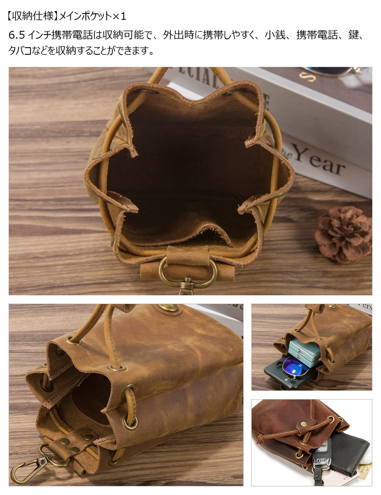 【数量限定】Whatna天 然 厚 手 牛革 小銭入れ コインケース メンズ レディース 2way巾着袋 ミニサコッシュ カラビナポーチ ベルトループ ミニウエストバッグポーチ 本革6.5インチiphoneを収納可 イヤホン収納ケース カラビナ付き (ブラウンA) | libertyislan