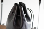 こちらはコンパクトなサイズでありながら、しっかりと収納ができるレザー巾着です。シンプルなスタイルに目を引くアイテムであり、小さなサイズのレザー巾着が可愛らしくも上品な雰囲気を演出します。