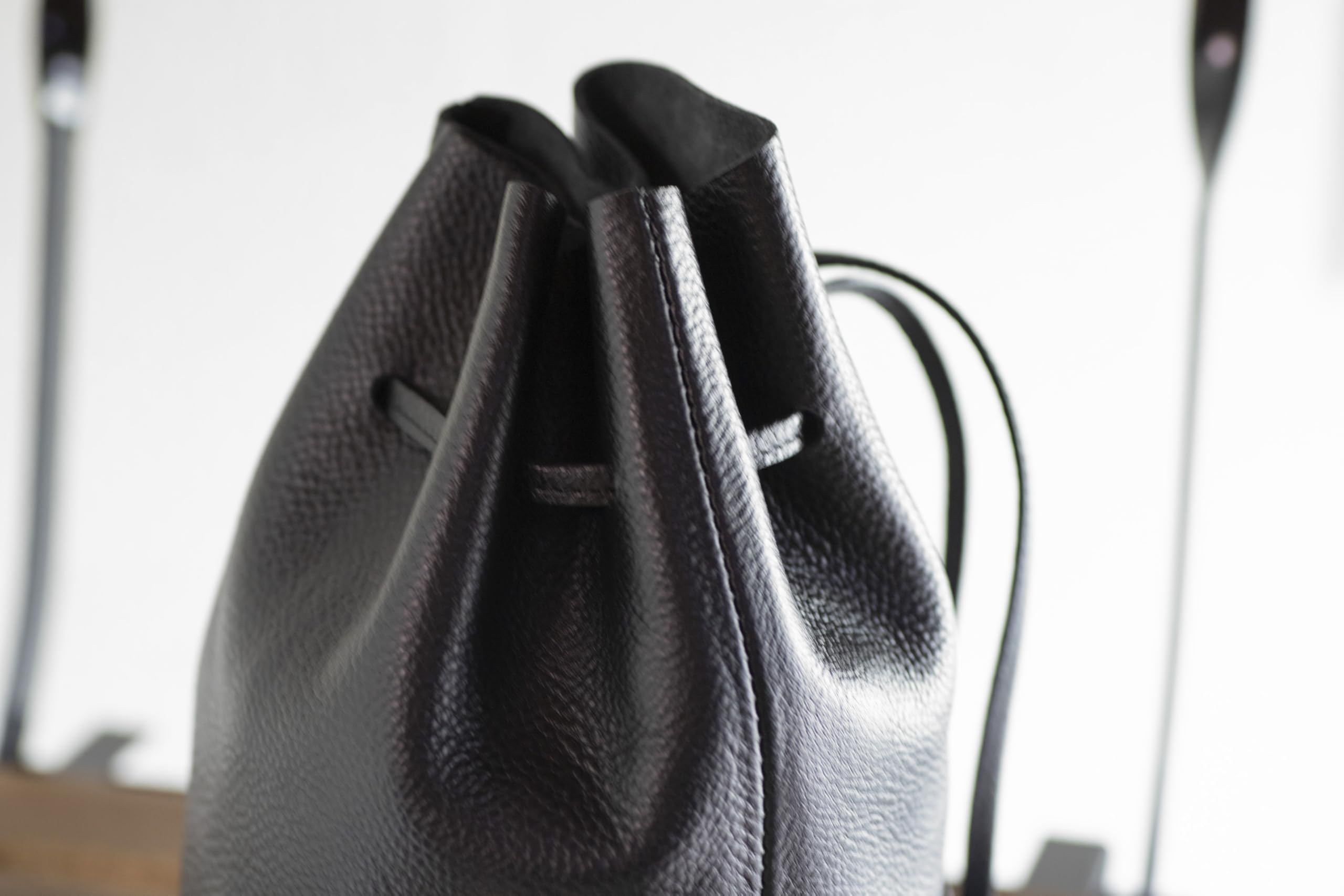 こちらはコンパクトなサイズでありながら、しっかりと収納ができるレザー巾着です。シンプルなスタイルに目を引くアイテムであり、小さなサイズのレザー巾着が可愛らしくも上品な雰囲気を演出します。使い勝手の良いカラーバリエーションで、荷物の少ない時には主要アイテムを入れてメインバッグとして使用することもできますし、荷物が多い時にはサブバッグとして使うこともできます。素材はマットシュリンクレザー(牛革)を使用しており、シルエットも可愛らしいです。小さいながらもたっぷりと収納できるので、毎日の使い勝手が良くなります。また、シンプルなデザインなので、サブバッグでもメインバッグでも違和感なく使用できます。さわやかなカラーバリエーションなので、夏でも使いやすくなっています。このバッグにはマットシュリンクレザーを使用しています。柔らかく、もちもちとした風合いで、凹凸のあるシュリンク加工により立体感のある表情を持っています。また、顔料仕上げで色付けされたレザーは上質な風合いを醸し出しています。国産レザーを使用しております。選べるカラーバリエーションで毎日がちょっと楽しくなります。