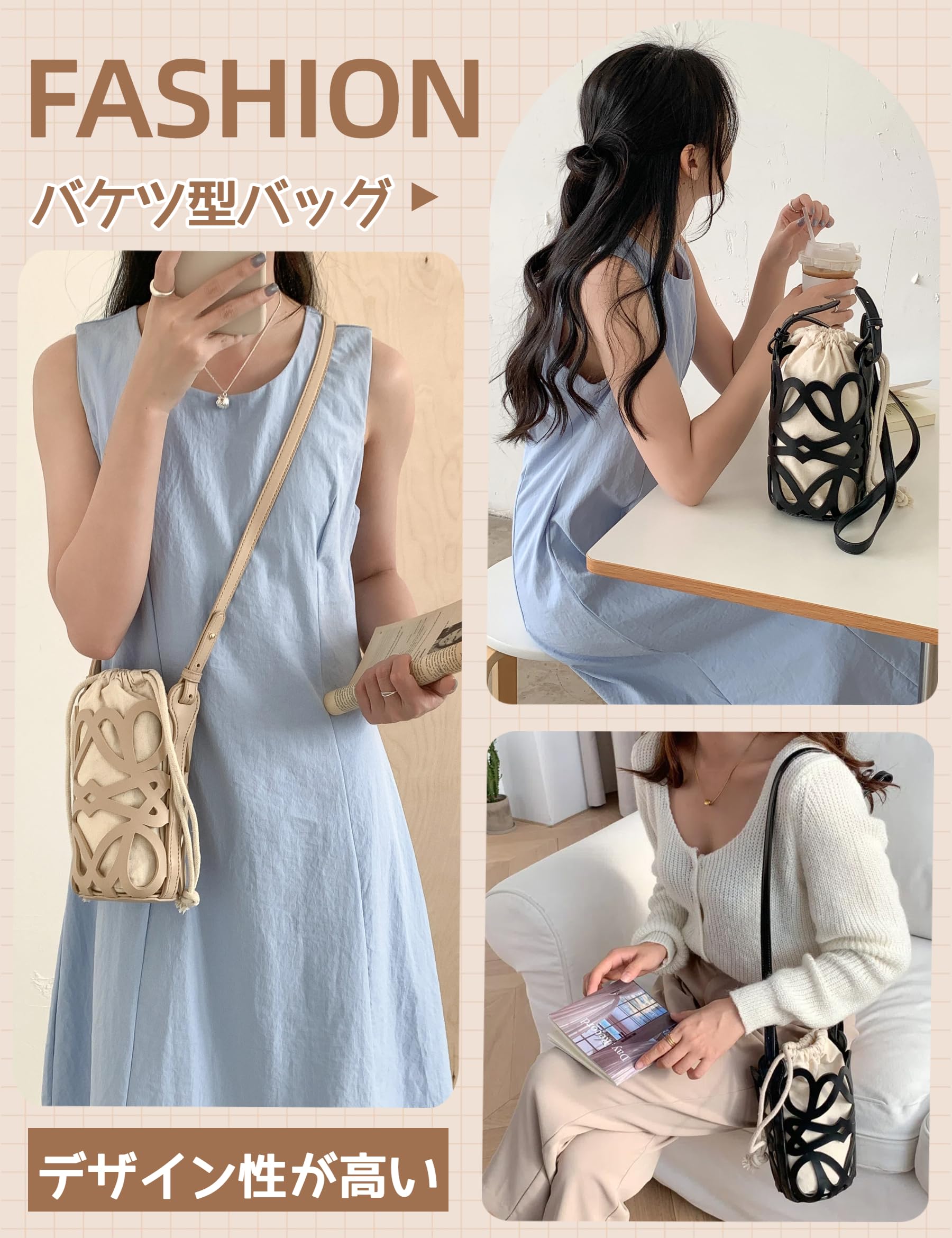 [HIKKER-LINK] ショルダーバッグ レディース 巾着 小さめ: スマホバッグ バケツ型 PUレザー 帆布 可愛い おしゃれ 斜め掛け カットワーク 2way 軽量 耐久性 通学 通勤 ショッピング プレゼント 入学祝い 女性用 大人