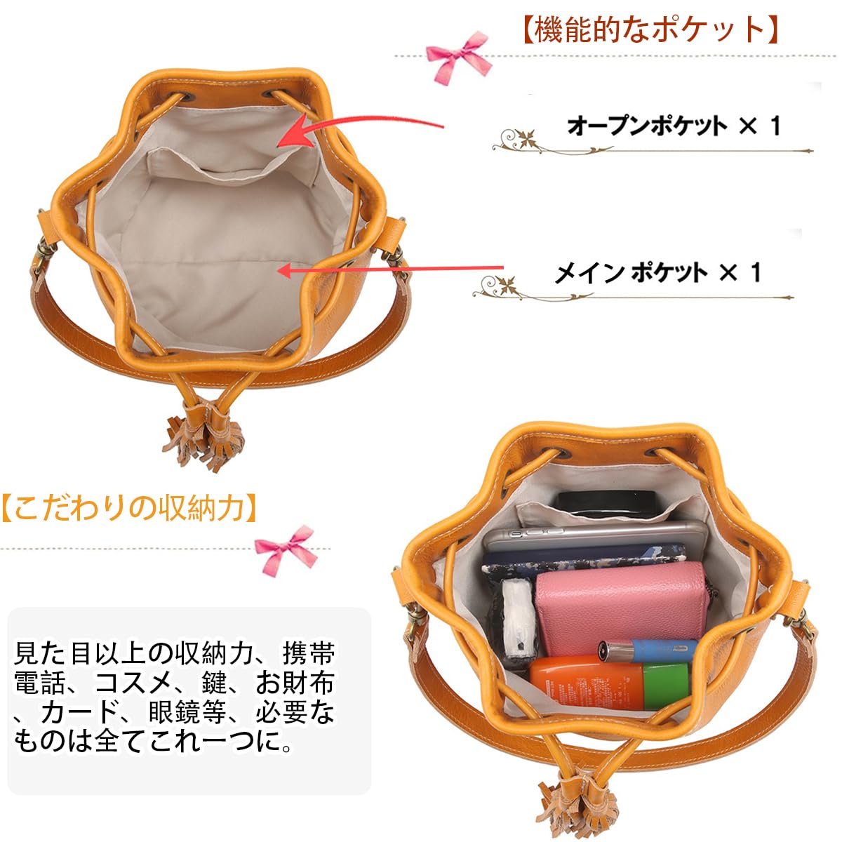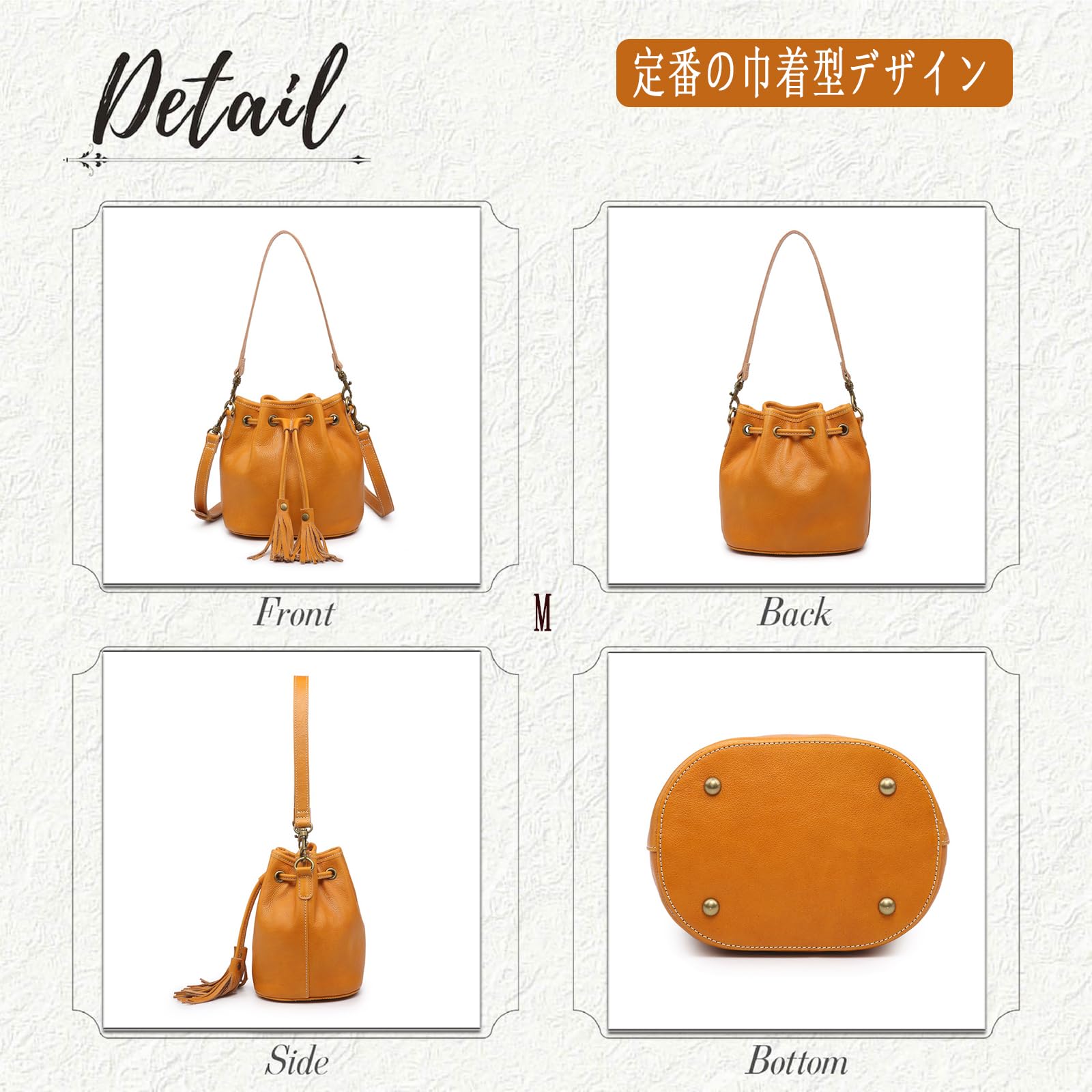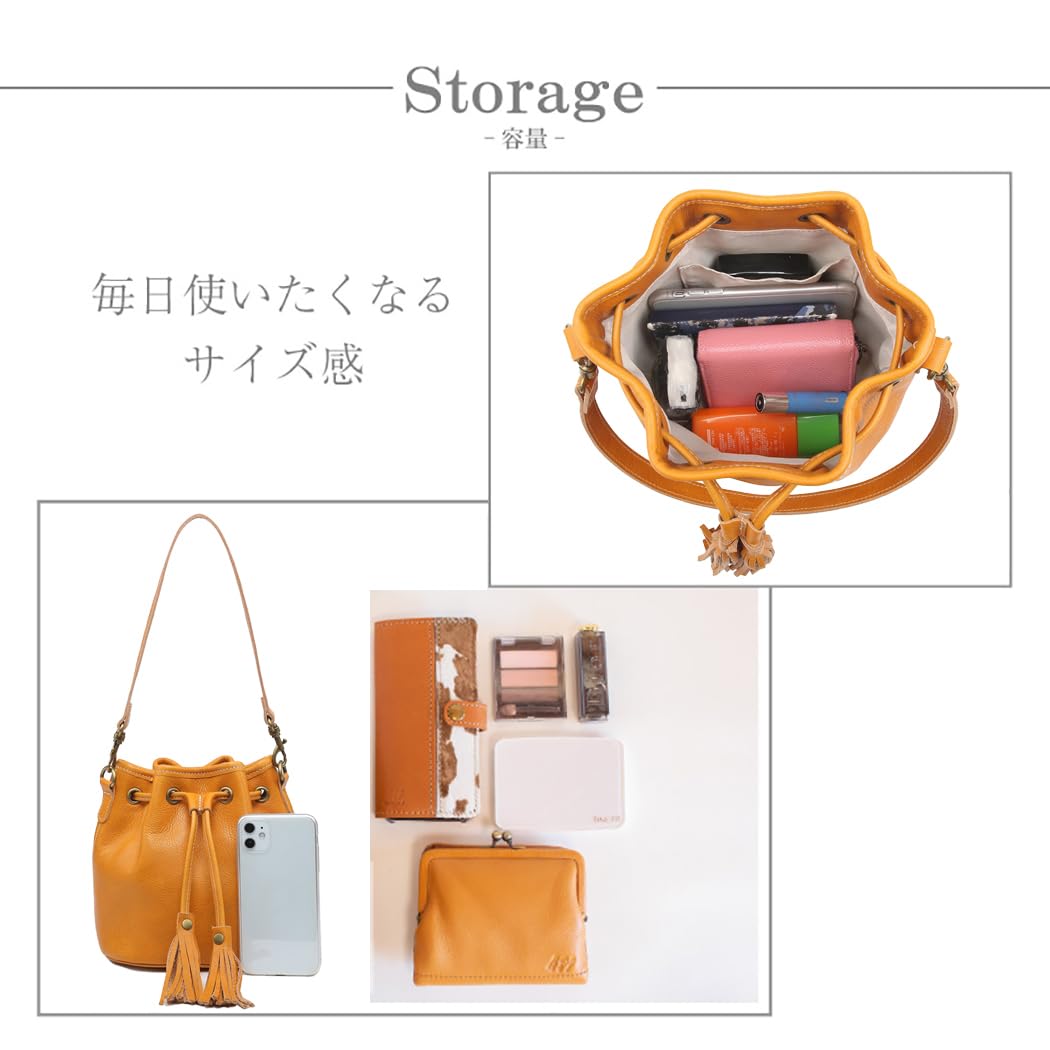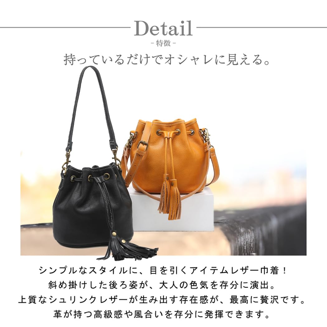 [AKIYAMA] 本革 巾着バッグ ミニショルダーバッグ レディースバッグ 斜めがけ 本革バケツ型ショルダー2way 本革 Mサイズ 小さめ シンプル 3WAY 2色
