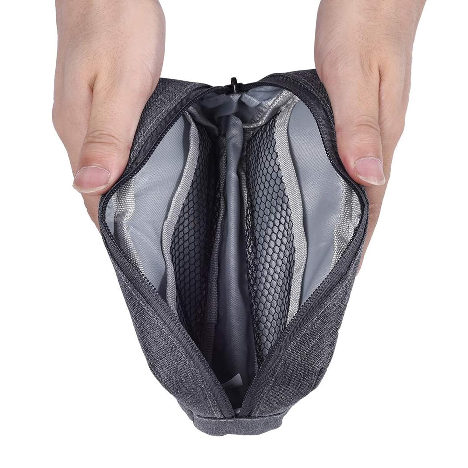 【分けて収納できる】電子袋にはメインの仕切りがあります。中には網状のポケットが二つあります、分けて収納できるのが非常に便利。