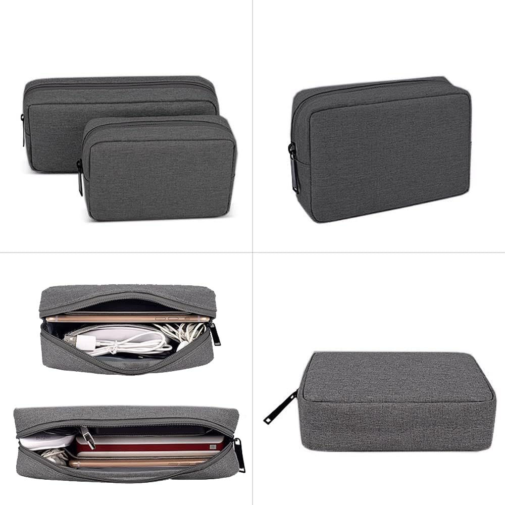 YINKE ガジェットポーチ メンズポーチ 小物入れ トラベルポーチ PC周辺 小物入れ収納ポーチ 大容量 多機能 収納 化粧 旅行 出張 ケーブル 収納 コード 2サイズセット (ダークグレー)