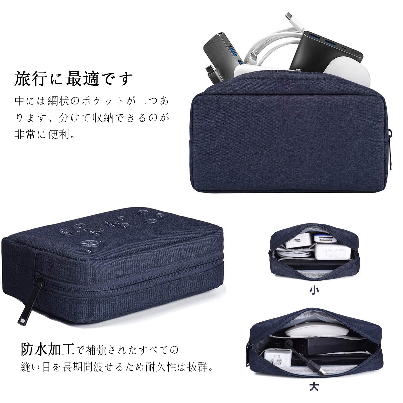 【在庫処分】YINKE ガジェットポーチ メンズポーチ 小物入れ トラベルポーチ PC周辺 小物入れ収納ポーチ 大容量 多機能 収納 化粧 旅行 出張 ケーブル 収納 コード 2サイズセット (ダークブルー) | libertyislan