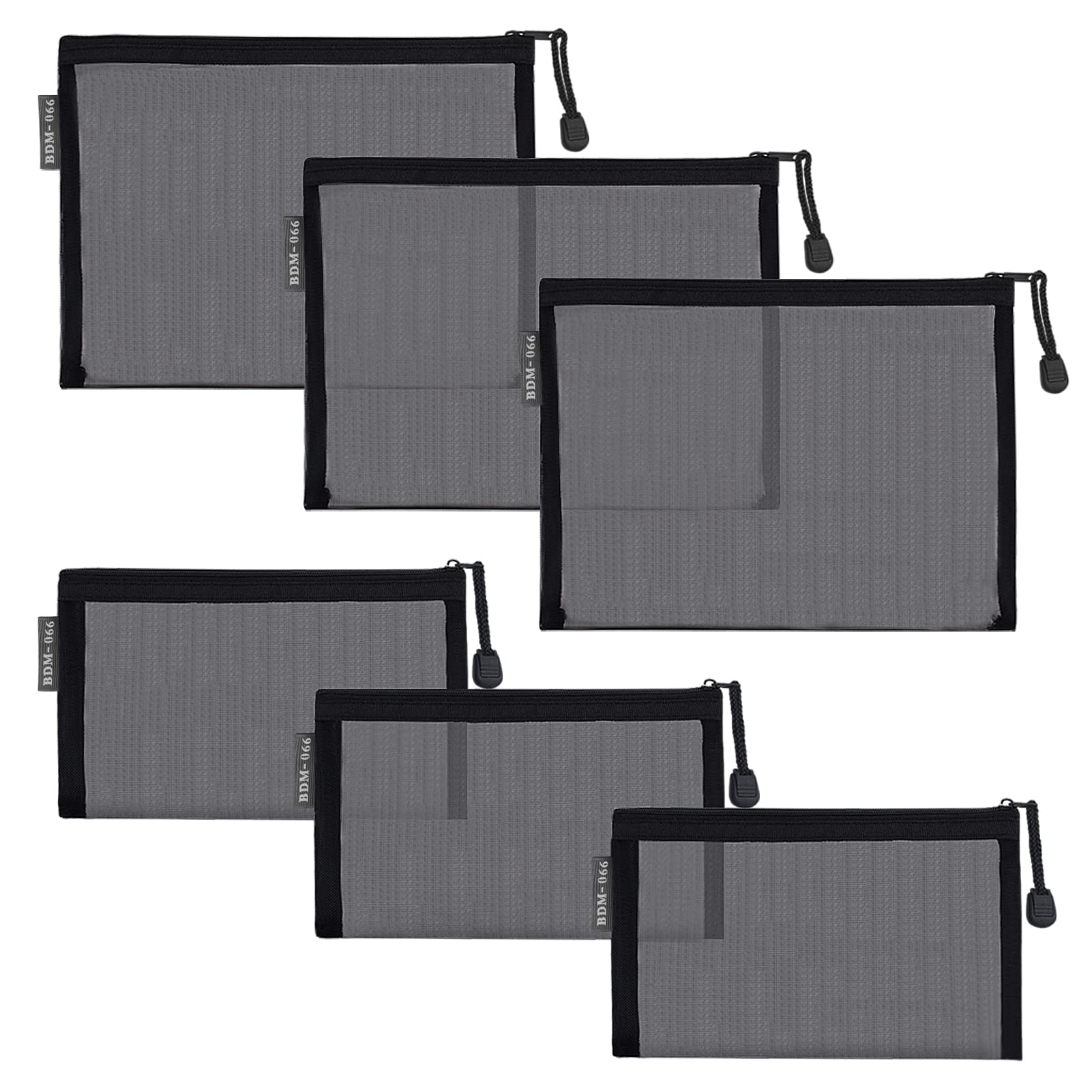 besharppin メッシュ化粧ポーチ 6枚入り メイクポーチ 化粧品収納 小物入れ 出張・旅行用 (ブラック)