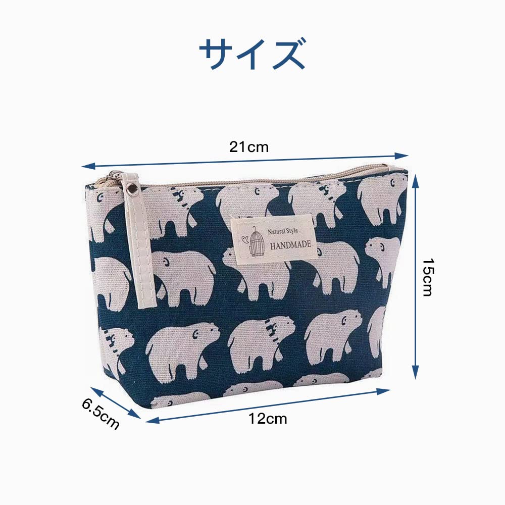 【可愛いデザイン】しろくまなどのキャラクターで満ち溢れた可愛いデザインの化粧ポーチ。裏地には異なる絵柄がある上、チャームもかわいくておしゃれです。