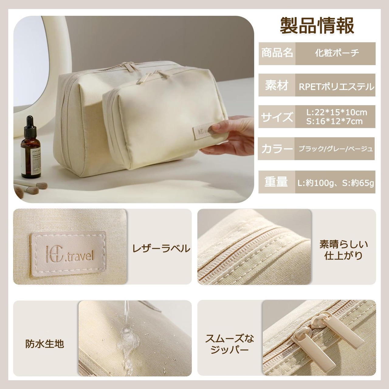 【製品仕様】重さ:L:約100g、S:約60g;サイズ:L:約22*15*10cm、S:約16*12*7cm;カラー:ブラック/グレー/ベージュ