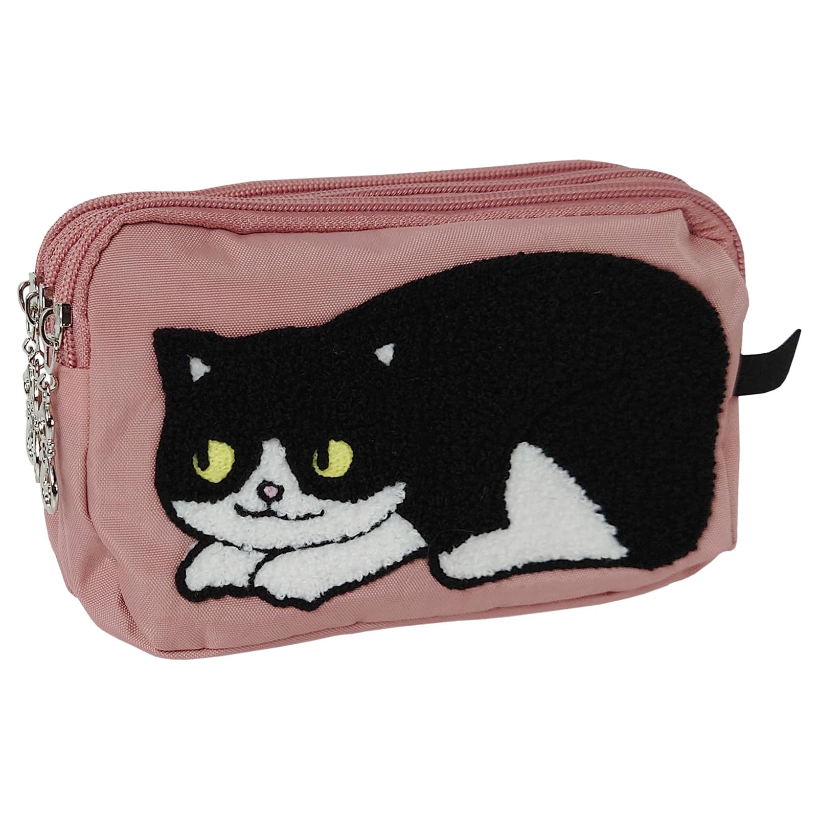 [クロスマーベリー] 猫 ポーチ 可愛い ふわふわ おしゃれ 大きめ 小物入れ かわいい レディース 仕切り付き 大容量 猫柄 大人 プレゼント 3連ファスナー 3層 コスメ 横型 ST06 ピンク